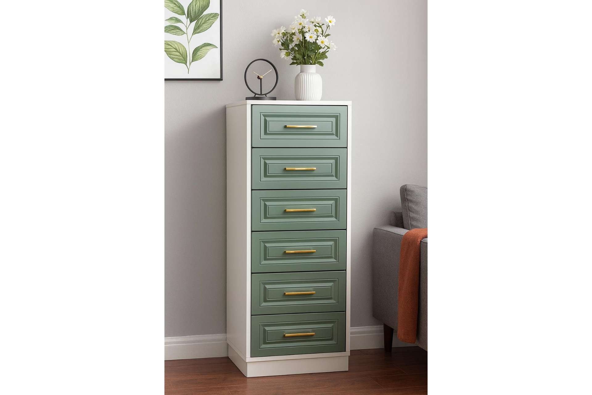 Ek BilgilerÜrün çekmece önleri Yeşil (Rall 6011 )MDF+Mebran kaplamalı olup çizilmeye ve deformasyona karşı üst düzey korumalıdır. Ürün gövdesi Açık Gri Renkte olup 1.sınıf melamin kaplı yonga levhadır. (Suntalam) 6 Çekmeceden oluşan ürünümüz geniş hacme sahip olup eşyalarınızın çok yönlü depolanmasını sağlar. Ürünlerimizde kullanılan raylar teleskopik ray olup uzun ömürlü ve yavaşlatıcılı ithal ray sistemidir. Ürünlerimizde kullanılan bağlantı elemanları ve Hırdavat ürünleri uluslararası marka ürünleridir. Ürünümüzün uzun ömürlü olmasını sağlamak amacıyla tüm deliklerde dübel kullanılmıştır. Yonga levha kenar bandı ( PVC bant) 0,80mm Kullanılmaktadır. Ürün Demonte olarak gönderilmektedir.