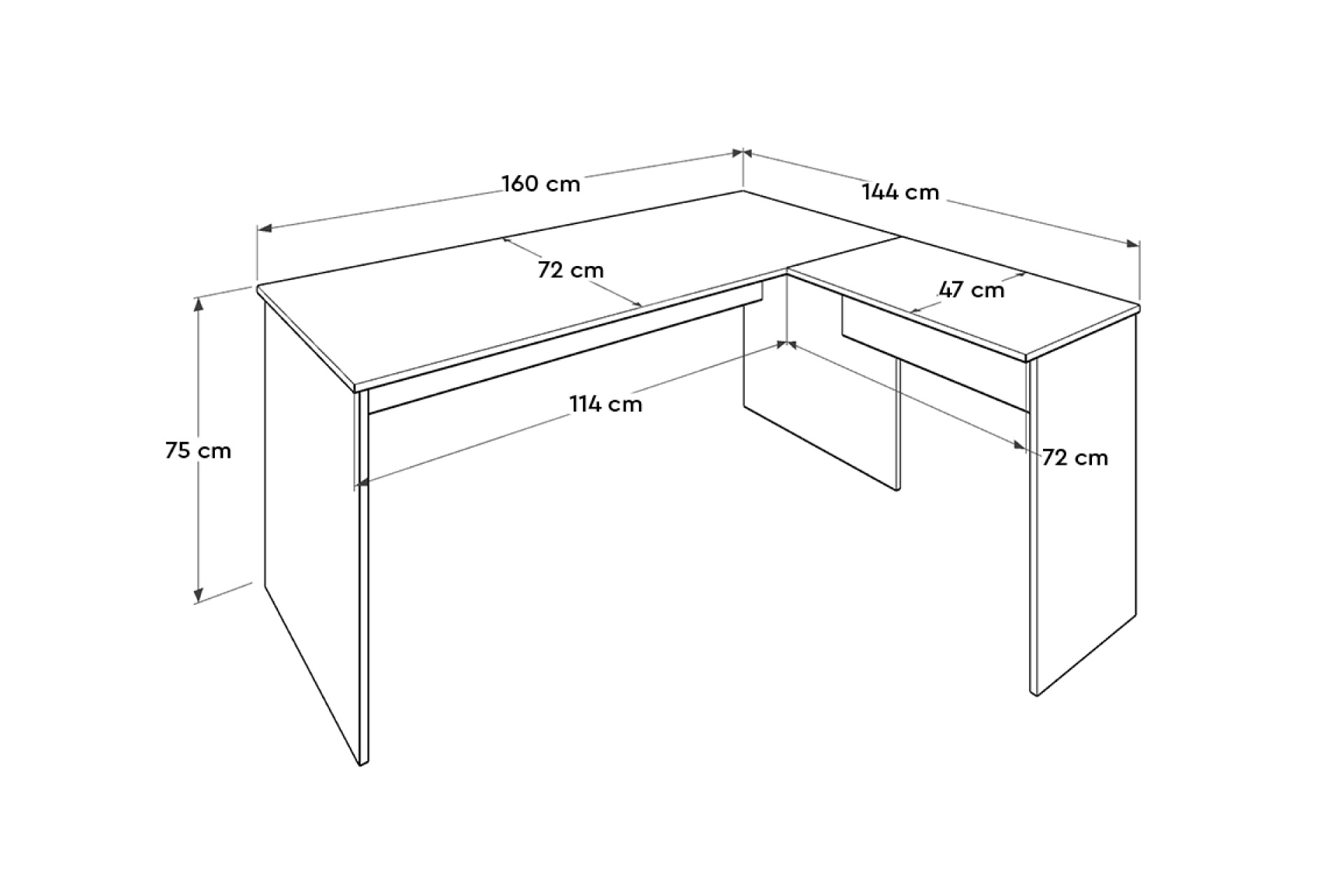Masa 160 cm 144 cm 75 cm