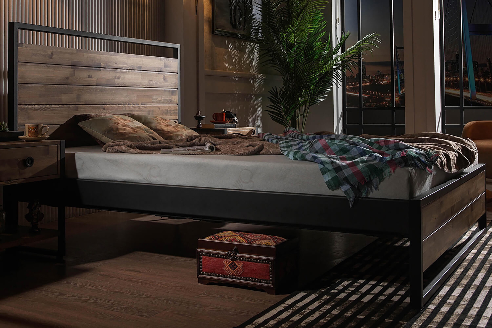 Ek BilgilerYatak fiyata dahil değildir. Kurulum için araç gerece ihtiyaç bulunmamaktadır. Tamamen geçme sistemlidir. Konik geçme sistemi kullanlmaktadır. Yerden Yüksekliği: 24 cm Başlık Yüksekliği: 110 cm Ayakucu Yüksekliği:39 cm Yatak Yuvası Derinliği: 11 cm Yatak altı platform olarak “AHŞAP LATA” kullanılmaktadır. NEDEN AHŞAP LATA? Kayın plakaların preslenmesiyle oluşturulduğundan esneme kabiliyetine sahiptir. Esnemenin getirdiği ekstra konfor sağlar. Avrupa ve Amerika’da tercih edilen yatak altı platformudur. Yatağın alttan hava almasını sağlar. Mukavemet sağlar. Montajı kolaydır. NEDEN KONİKLEŞTİRİLMİŞ GEÇME SİSTEM? Metal karyola, sofa, daybed ve ranza gibi ürünlerde, tüketicilerin en sık şikayet ettiği sorunlar zamanla oluşan sallanma ve gıcırdama sesidir. Standart vida veya kızaklı bağlantı sistemleri, zamanla boşluk oluşumuna, dolayısıyla sallanma ve ses problemlerine yol açarlar. Unimet ürünlerinde ise vidalı bağlantı yerine KONİKLEŞTİRİLMİŞ GEÇME SİSTEM kullanılır. Bu sistem hem montajı kolaylaştırır hem de ürün üzerinde oluşan ağırlık ile kilitleme sistemi güçlendirerek, sallanma ve ses sorunlarını ortadan kaldırır. Ayrıca, özel bükülmüş yan sac traversler ve ters kilitli borular sayesinde esneme önlenir ve ahşap lata plakalar ile yatağın hava alması sağlanarak konfor artırılır