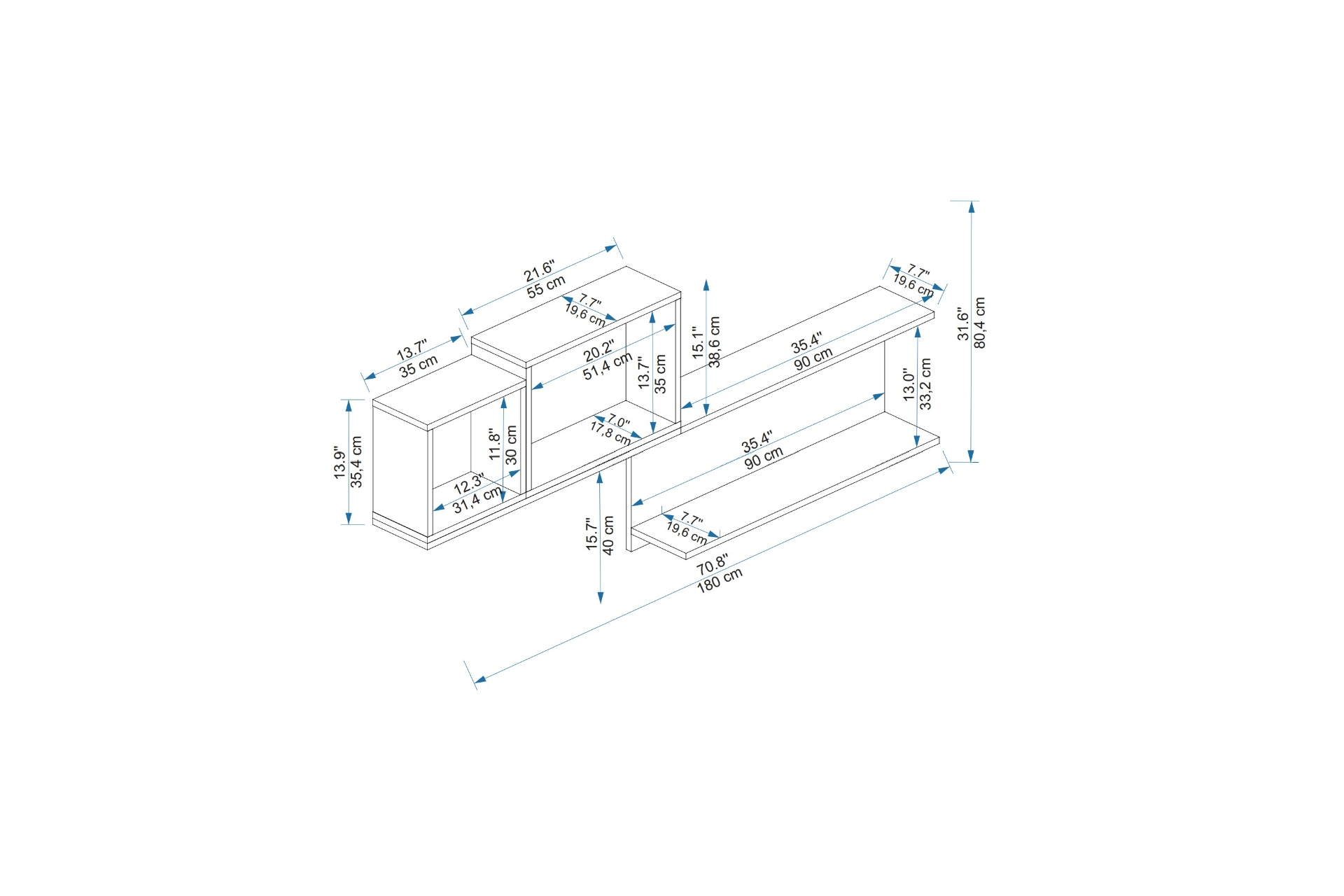 ÜRÜN ÖLÇÜLERİ 180 cm 19.6 cm 80.4 cm