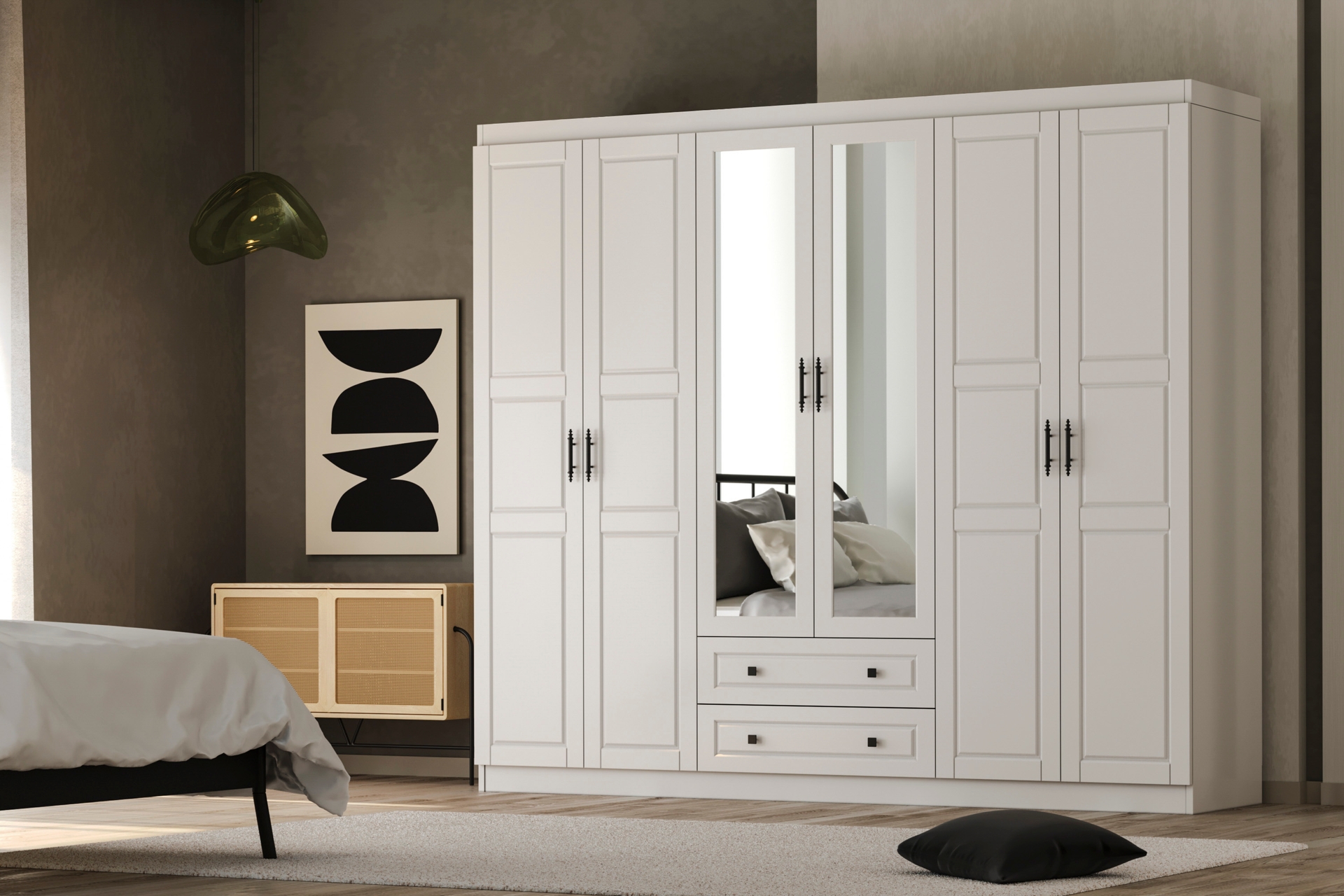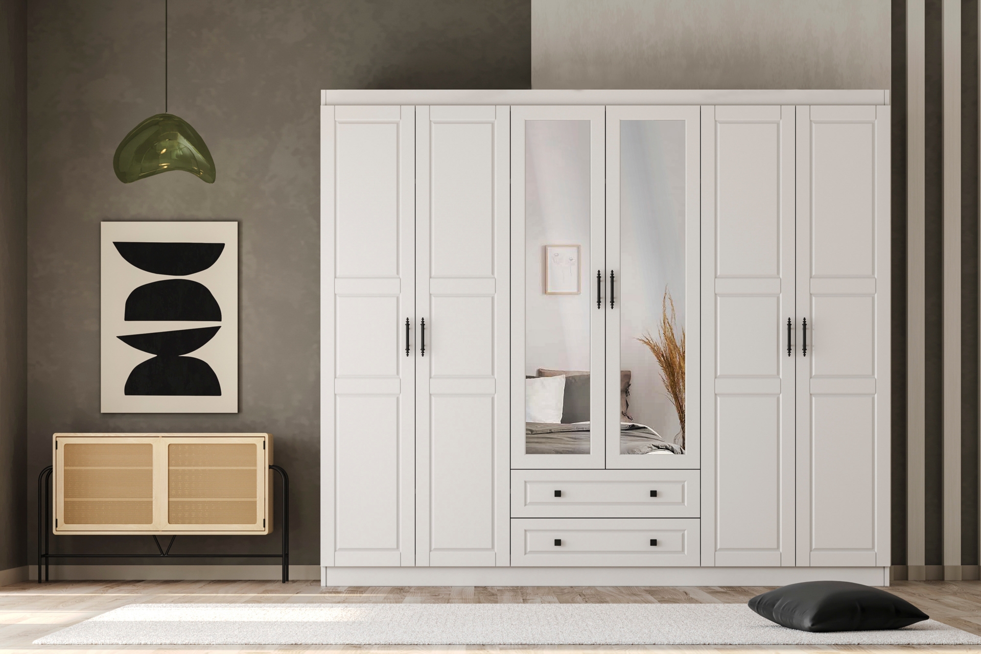 Gardırop MalzemesiGövde; 1. kalite sunta-lam malzeme ile; ön kapaklar ise MDF üzeri membran kaplama ile üretilmiştir.