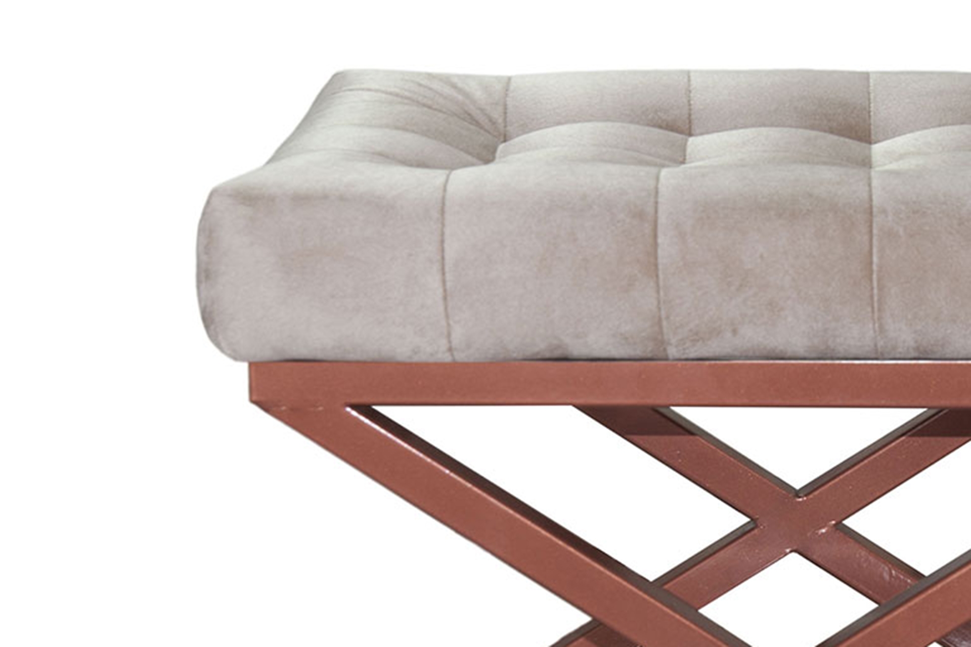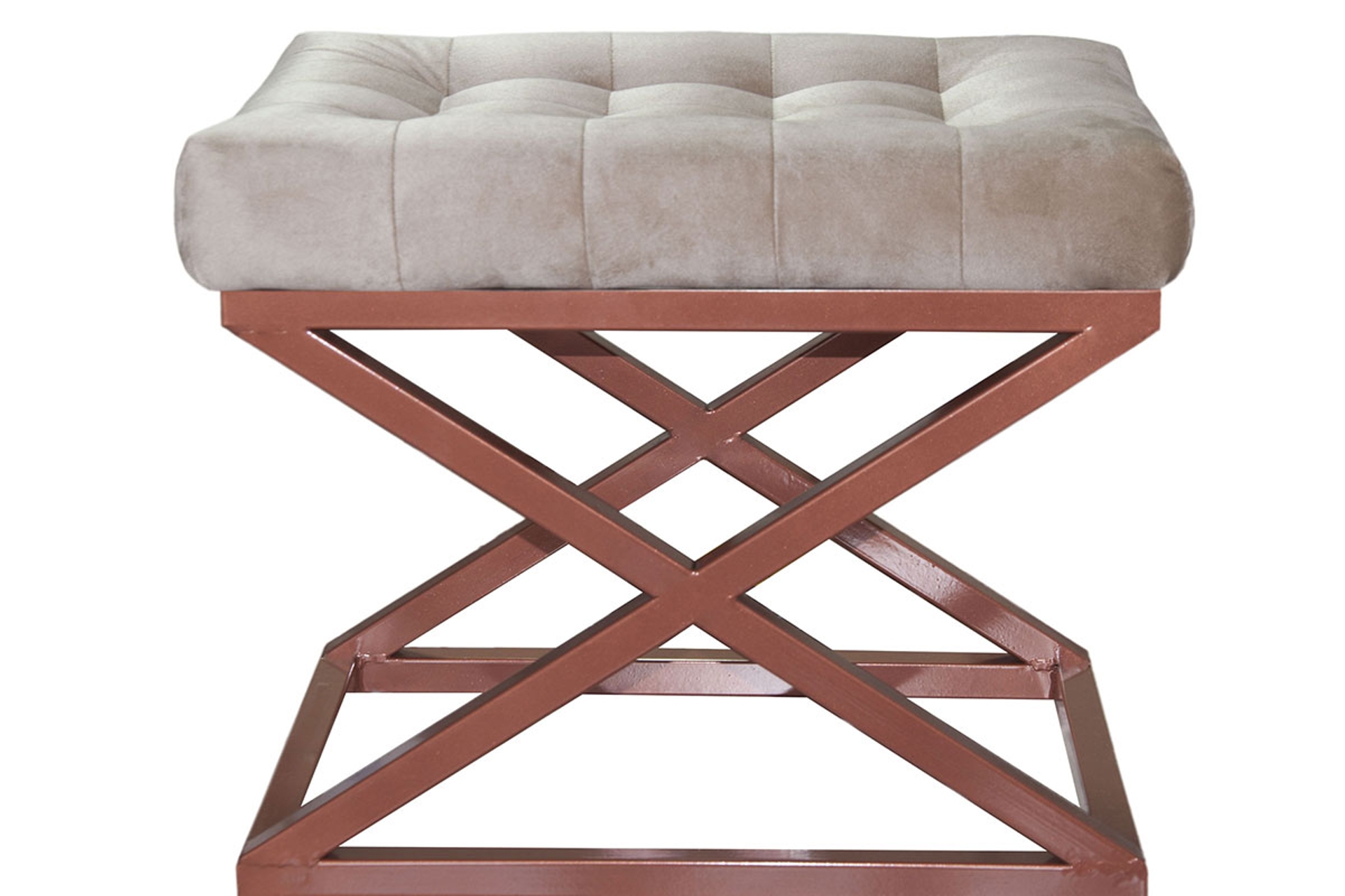 Ek BilgilerÇapraz metal ayaklarıyla çok işlevsel olan puf, modern detaylarıyla evinizde öne çıkacak. Metal gövdesiyle farklı yaşam alanlarına uyum sağlayacak ve yan sehpa olarak da kullanılabilecek pufun üst tablası 40×50 cm büyüklüğünde yüksekliği ise 42 cm’dir.