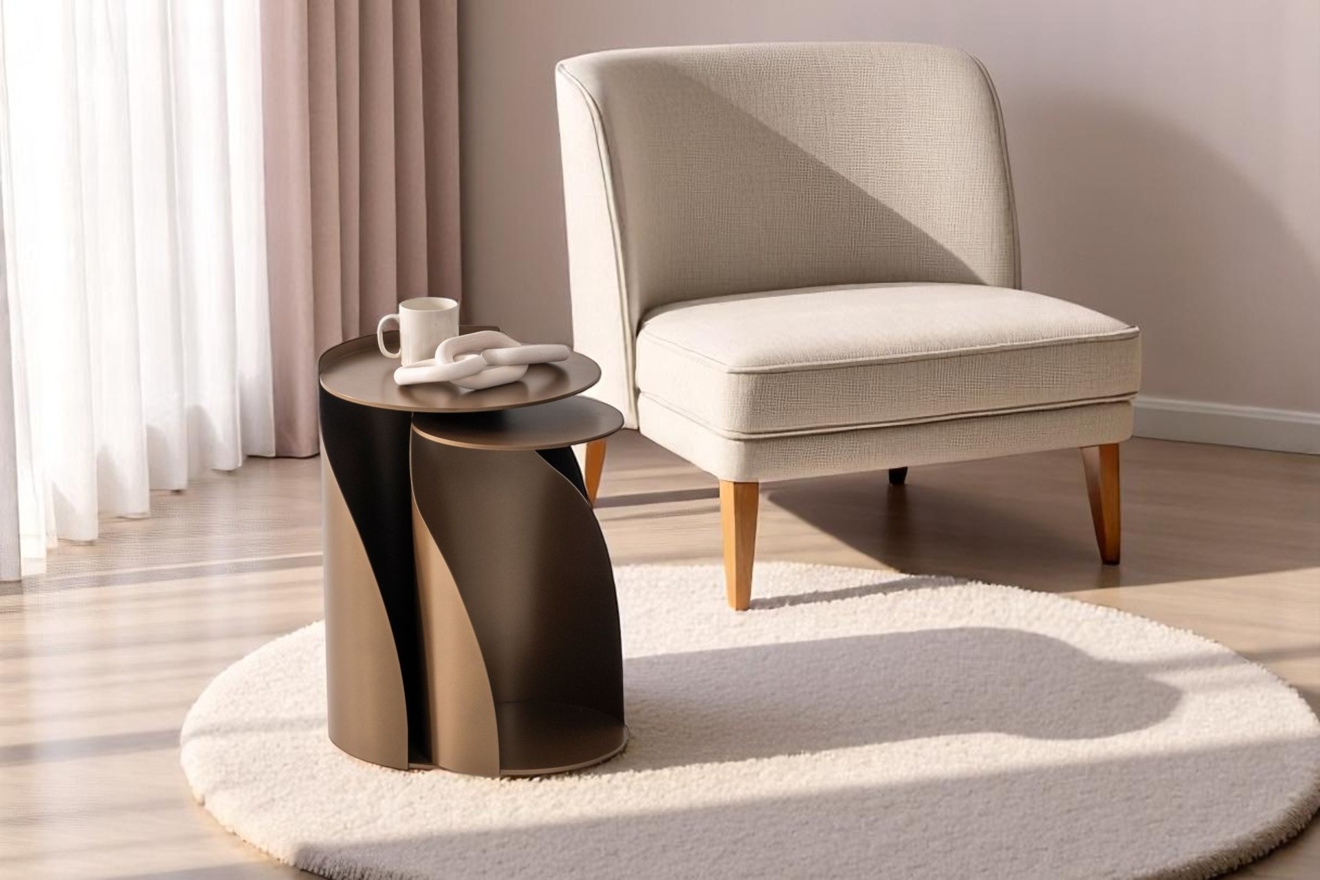 Belinda Yan Sehpa, yuvarlak formu ve modern çizgileriyle iç mekâna zarif bir denge katar. Metal malzemesiyle sağlam ve şık bir duruş sunarken, kompakt ölçüleri sayesinde dar alanlarda dahi kolaylıkla kullanılabilir. Minimalist ama dikkat çekici detaylarıyla dekorasyona sade bir şıklık ekler.