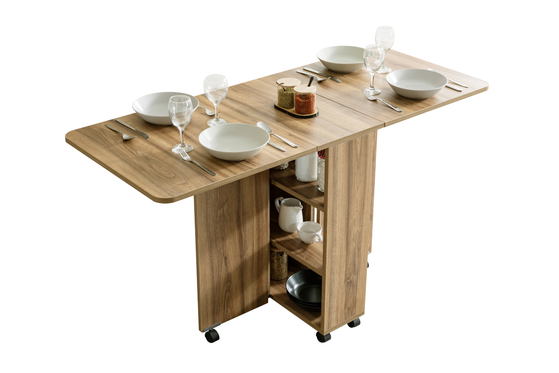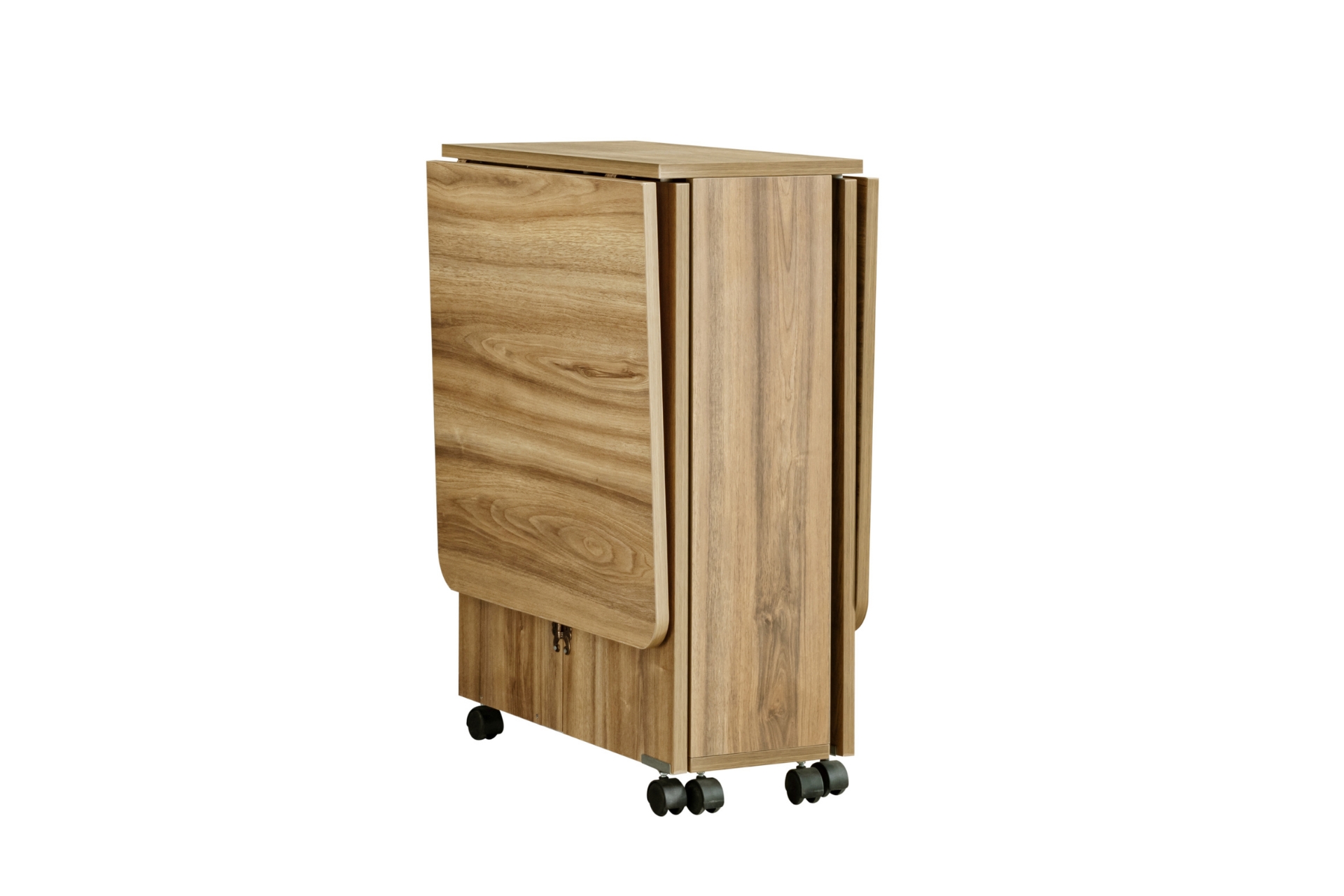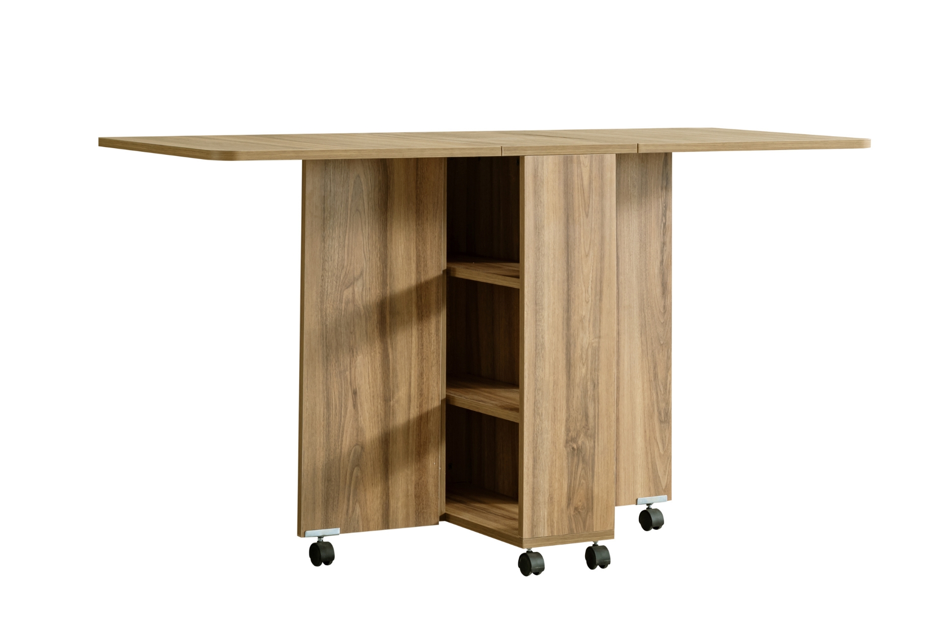 Ek Bilgiler1. Sınıf Melamin Kaplı Yonga Levha malzemeden üretilmiştir. Birleştirme aksesuarları olarak minifix ve kavela kullanılmıştır. Hareketli yapı: 360° dönebilen tablalı döner tekerlekler ile kolay taşıma Kelebek ve yaprak menteşe kullanılmıştır. Katlanabilir tasarım: Açılır kapanır mekanizma ile yerden tasarruf. Ürün Kurulu Ölçüleri : Genişlik : Açık 145 cm Kapalı 35 cm Yükseklik : 80 cm Derinlik: 60 cm