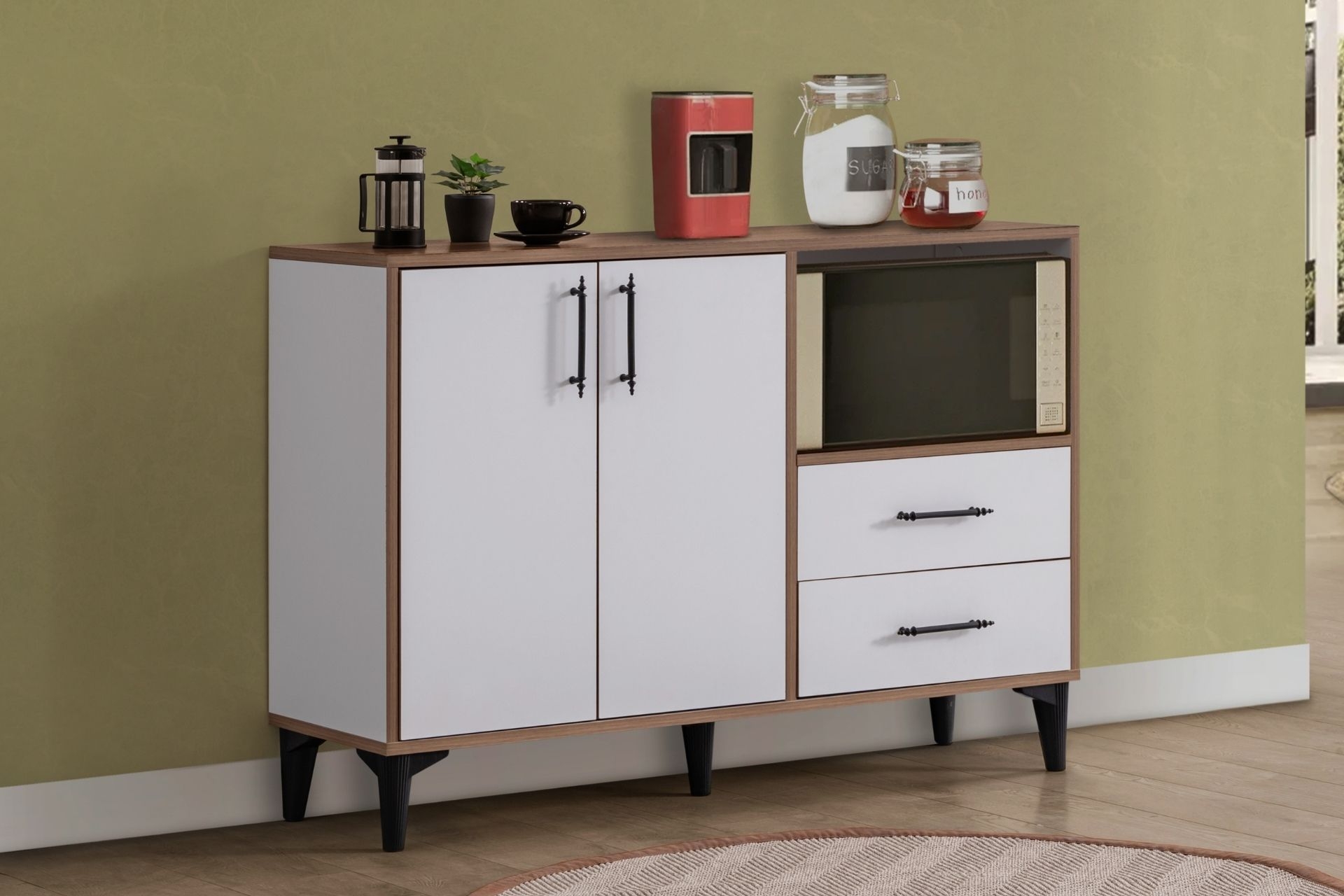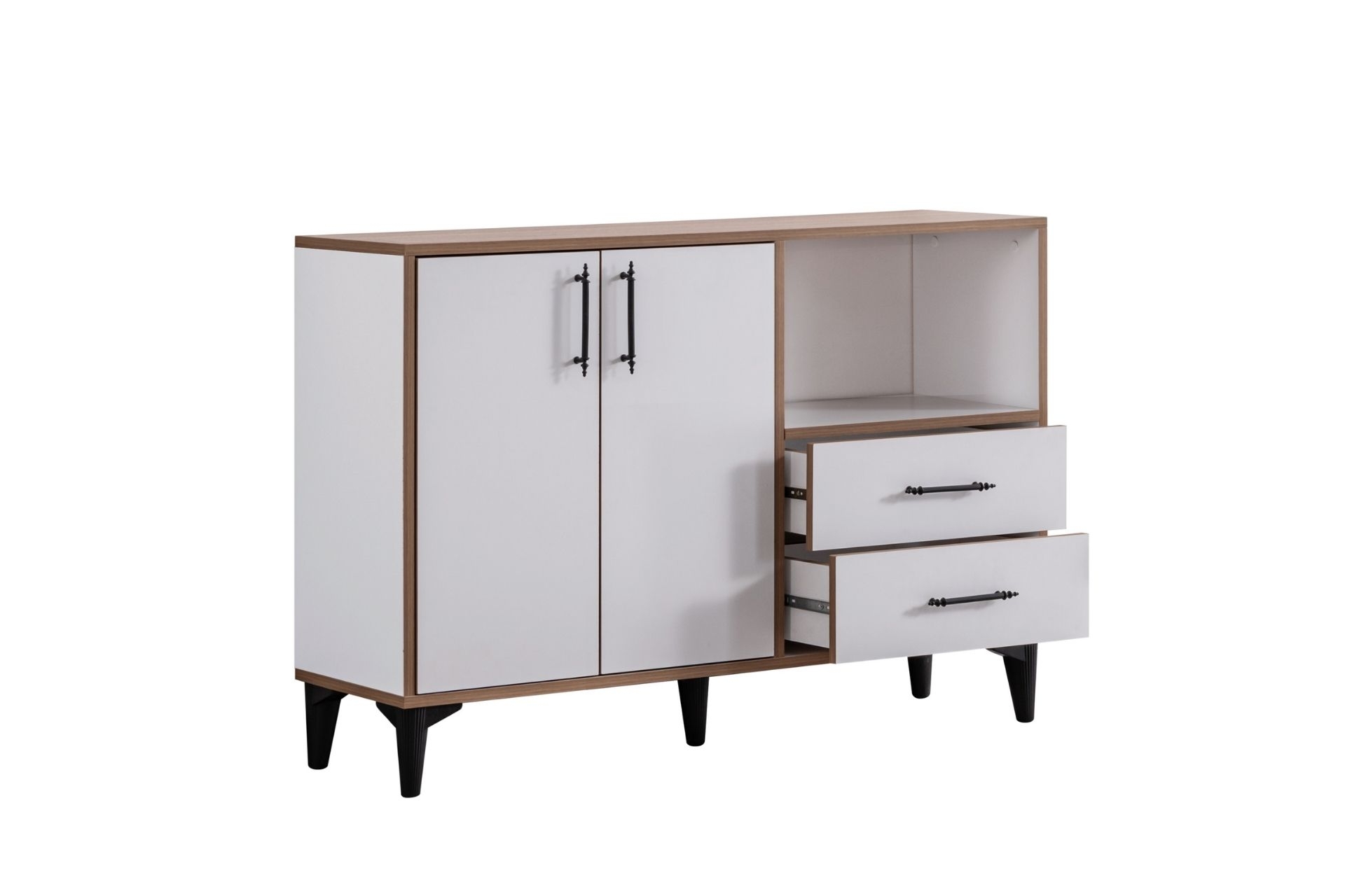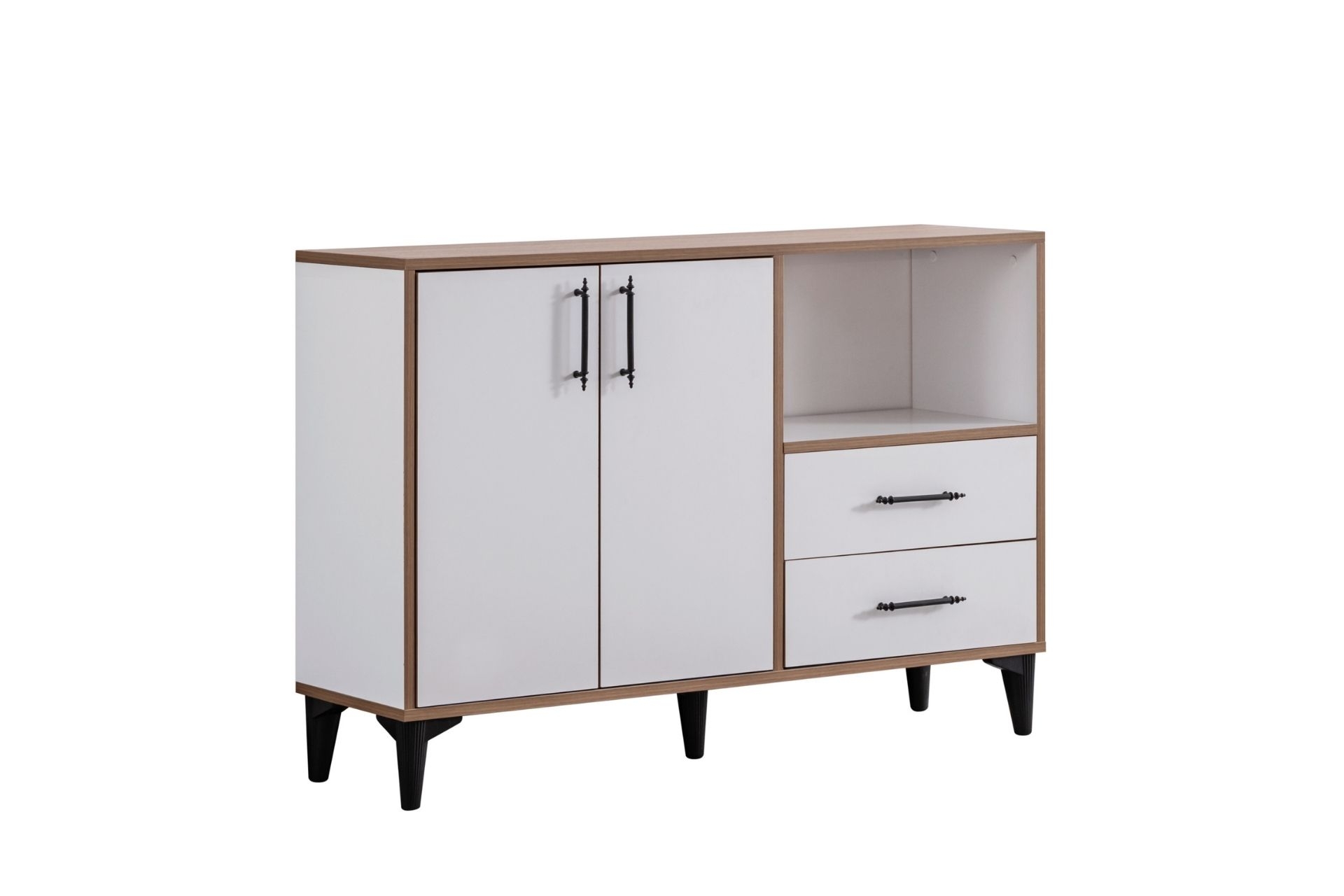 Ek BilgilerÜrünümüz Melamin Kaplı Yonga Levha malzemeden üretilmiştir. Çekmecelerde bilyeli ray kullanılmıştır. Ürün kulp ve ayakları plastik malzemedir. Ayak yüksekliği 10 cm dir. Ürün Kurulu Ölçüleri : Genişlik : 120 cm Yükseklik : 85 cm Derinlik: 41 cm