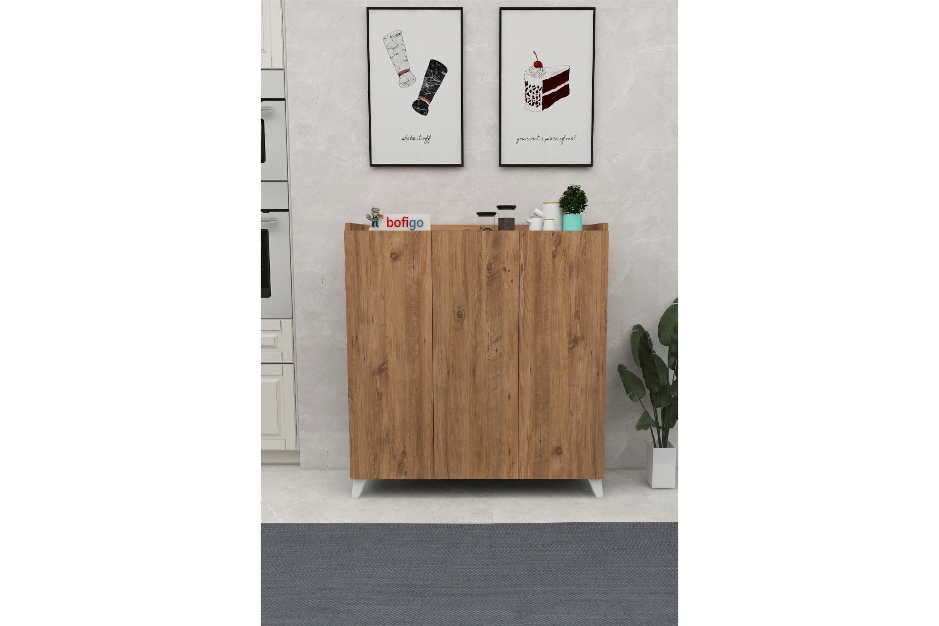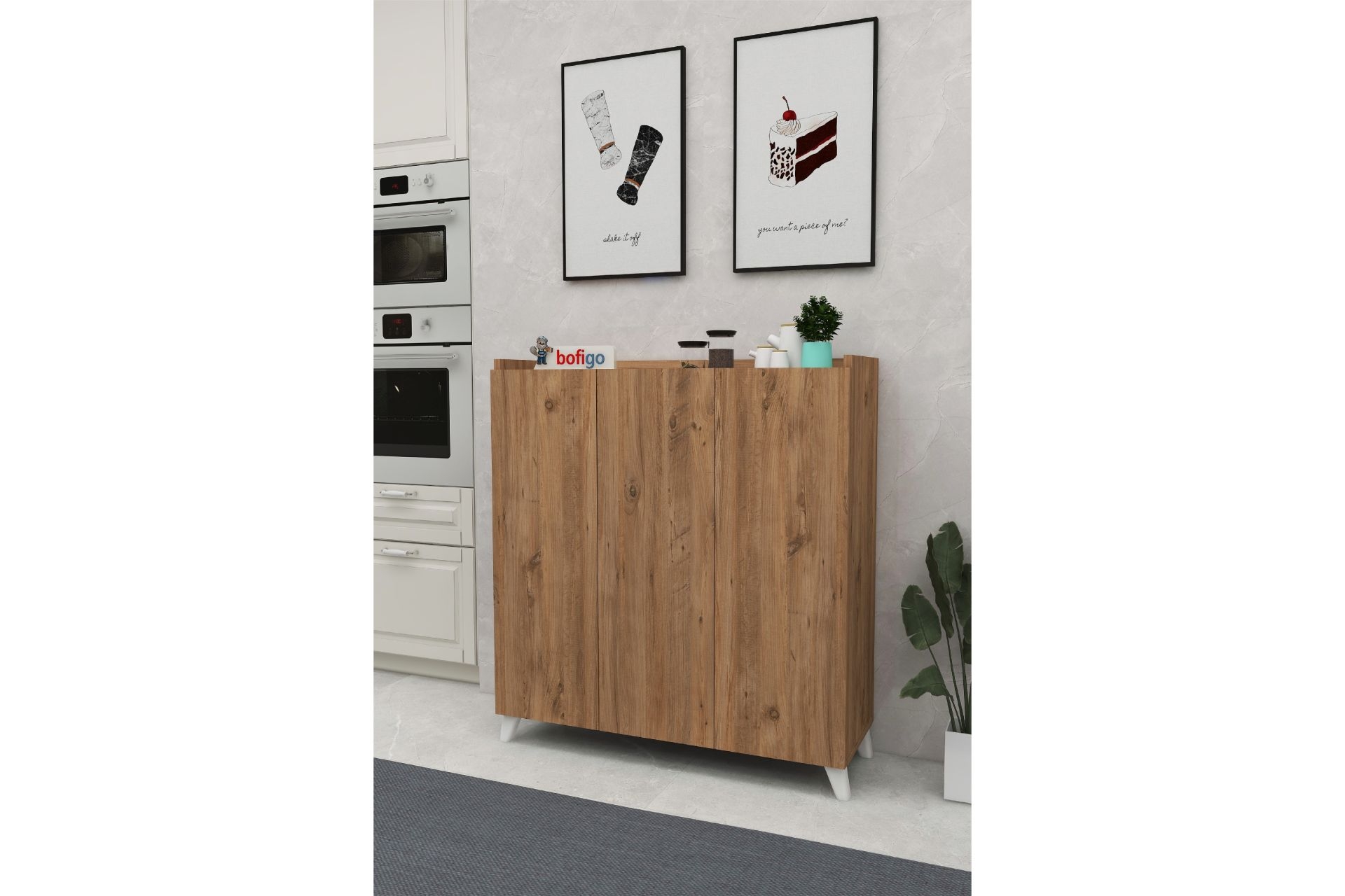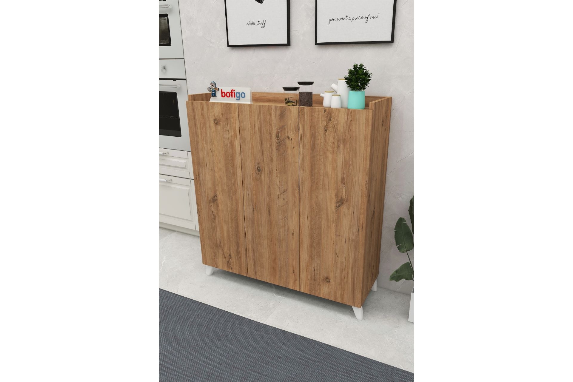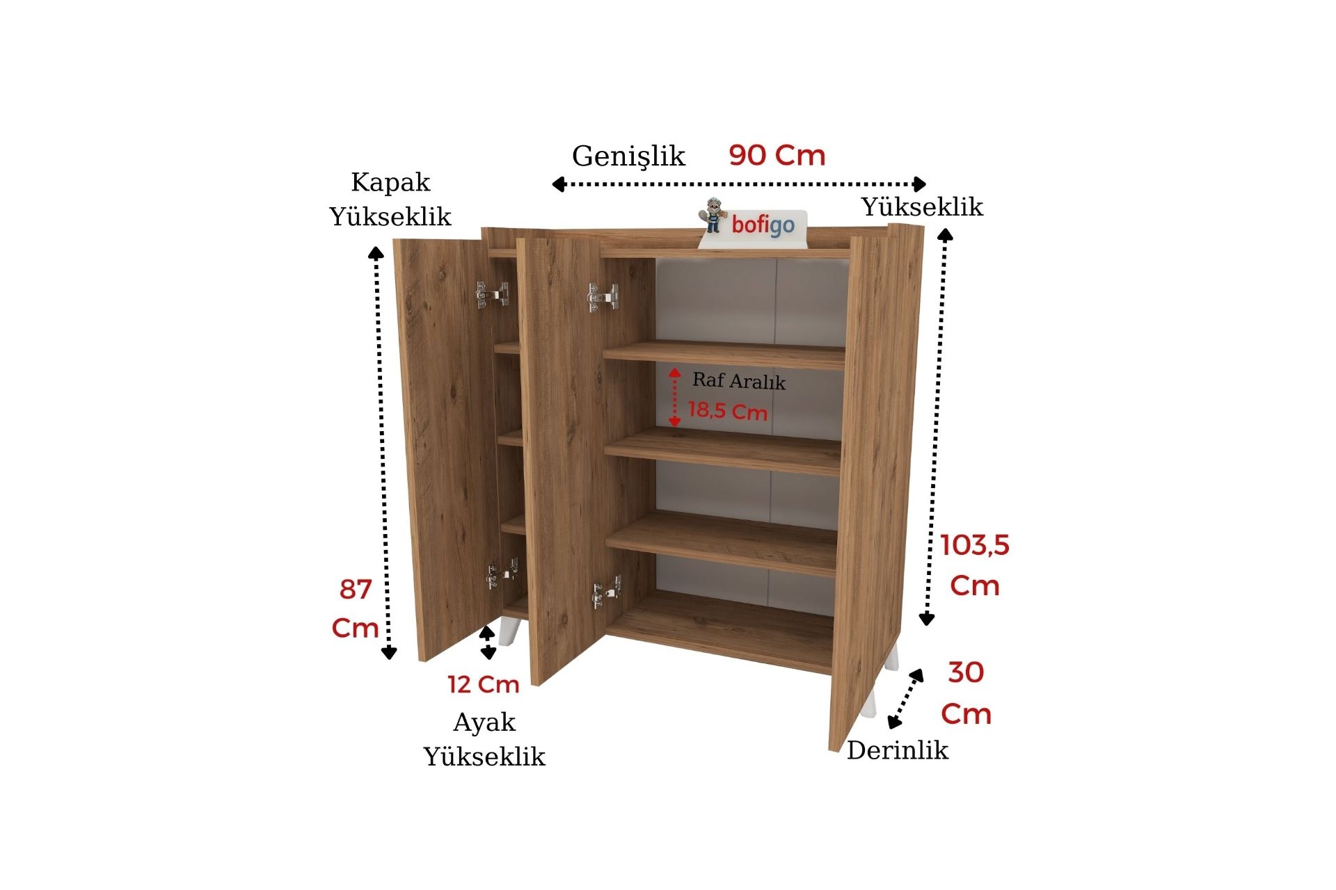 Ek BilgilerBofigo 3 Kapaklı Çok Amaçlı Dolap, özel kolisi içinde demonte olarak sevk edilir. Dolabımızın gövdesinde 18mm kalınlığında 1. kalite yonga levha kullanılmıştır. TSE, Avrupa Birliği EN, ISO 9001 ve FSC sertifikalarına sahiptir. E1 Standartları dahilinde, kanserojen madde içermez. Dolabımızın tüm aksamları, Bofigo fabrikasında üretilmektedir. Bu sebeple tüm üretim aşamaları kontrolümüz altındadır. Kurulum şeması ve vida setleri koli içerisinde yer almaktadır. Kolay bir şekilde kurulumunu gerçekleştirebilirsiniz. * Ürün ölçüleri görsellerde detaylı bir şekilde paylaşılmıştır.* Görsel amaçlı objeler ürüne dahil değildir Bofigo 3 Kapaklı Çok Amaçlı Dolap Modern tasarımı sayesinde mutfak, çocuk odası, banyo ve evinizin bir çok yerinde rahatlıkla kullanabilirsiniz. * Ürün Ölçüleri* Yerden Yükseklik: 103,5 cm Genişlik: 90 cm Derinlik: 30 cm Raf Arası Yükseklik: 18,5 cm Ayak yüksekliği: 12 cm