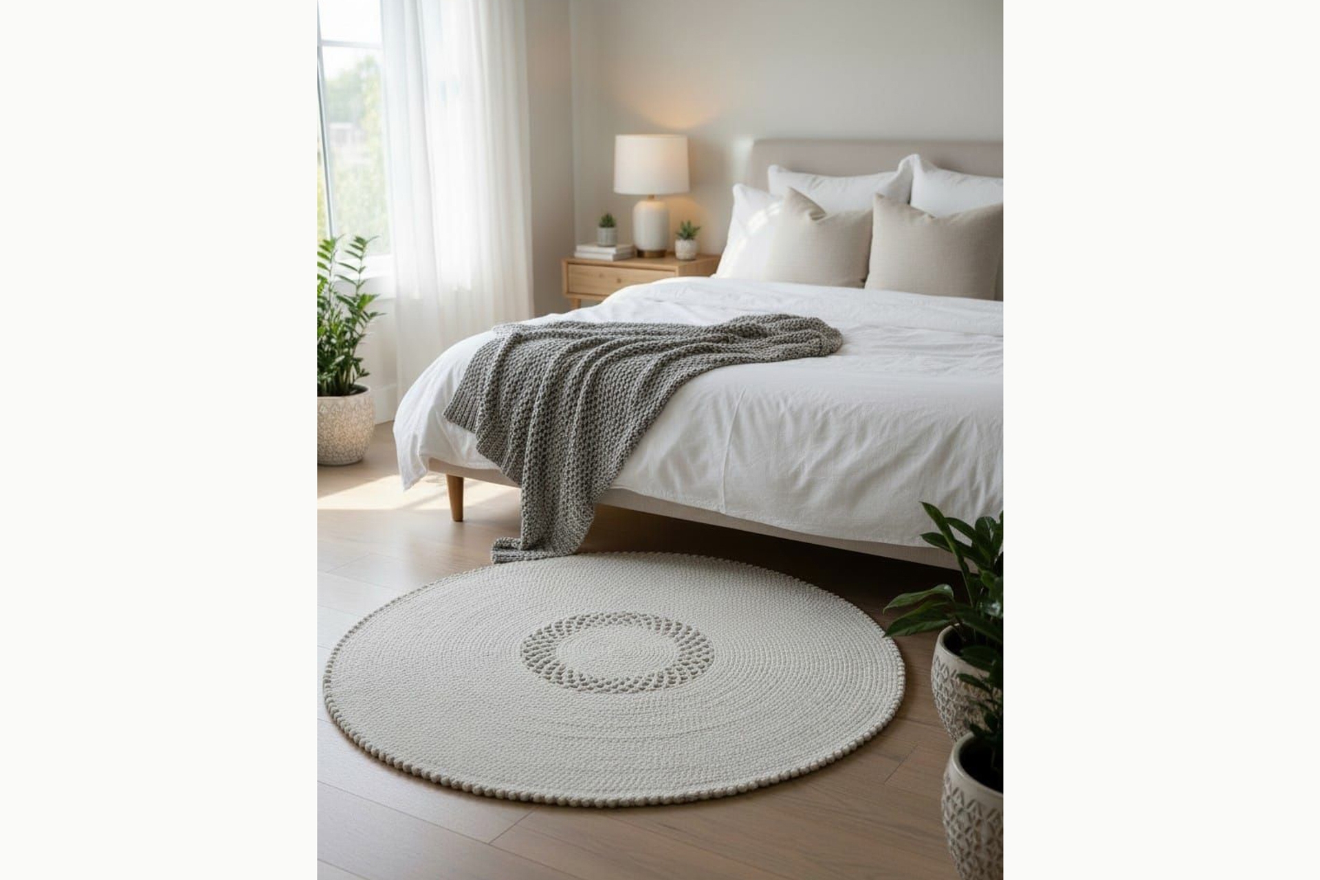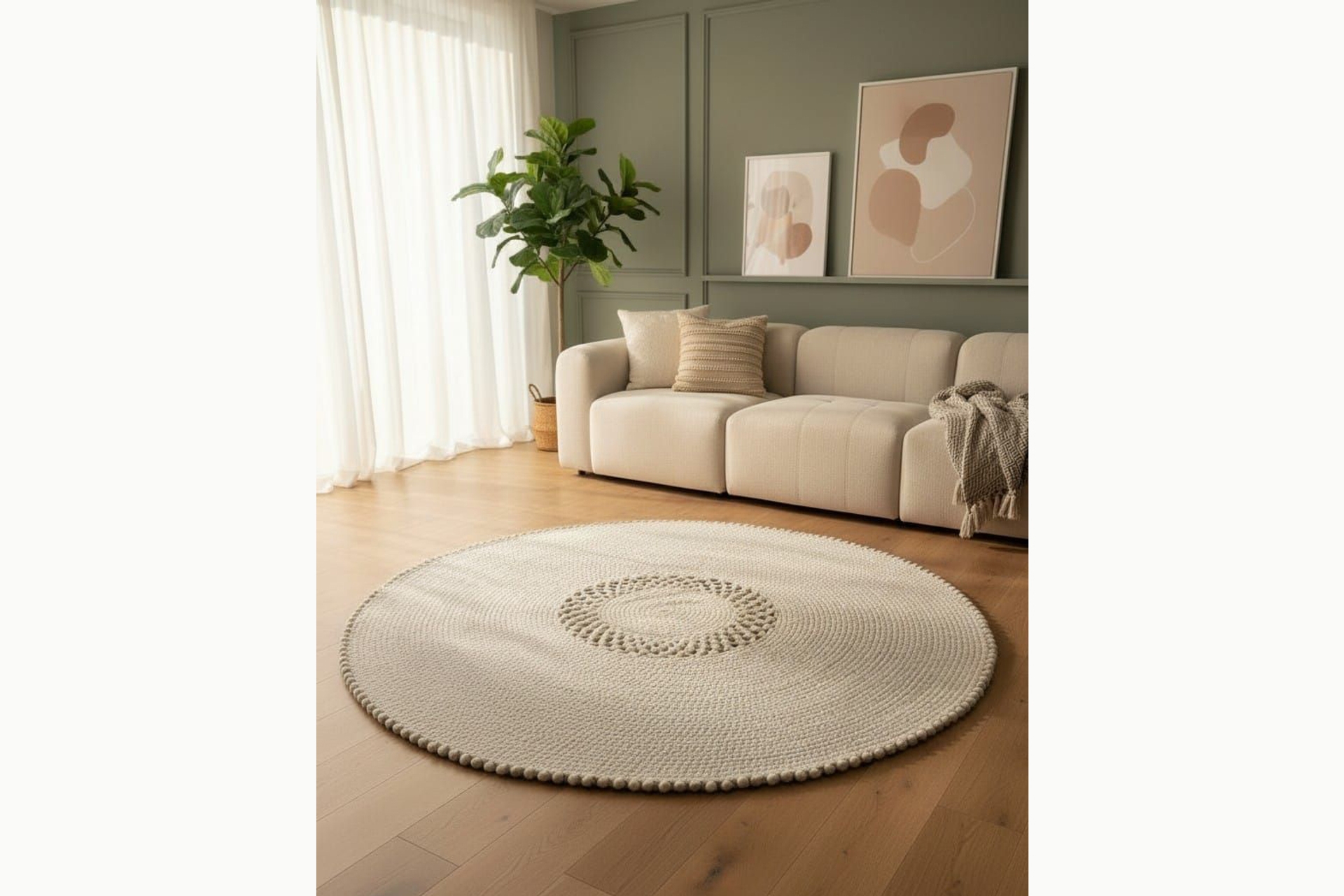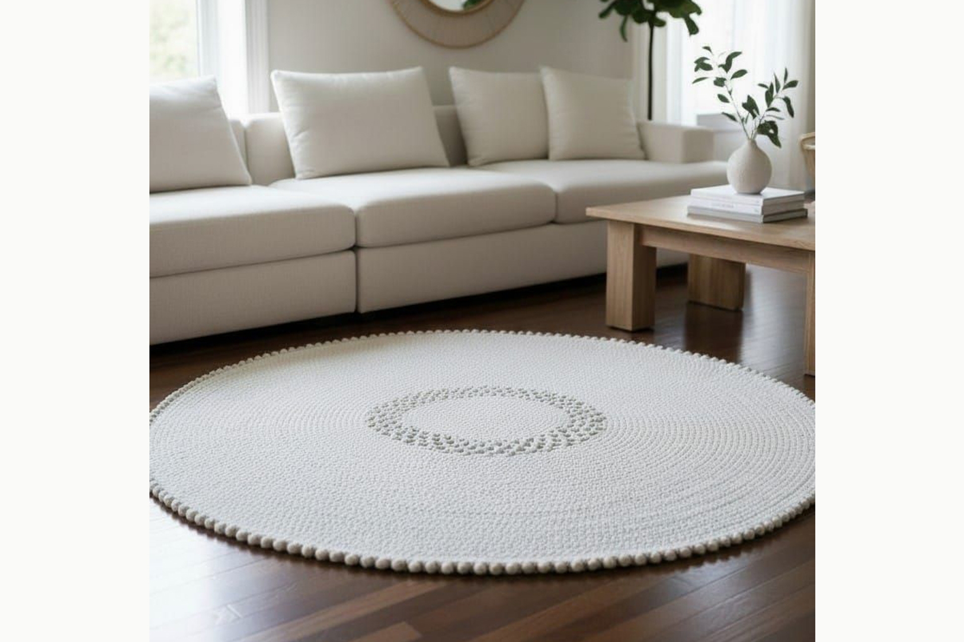 Minimal Yuvarlak Hasır Stil Halı – Bohem Dekoratif Salon Halısı Püskül Kenarlı 100 cm 100 cm 1 cm