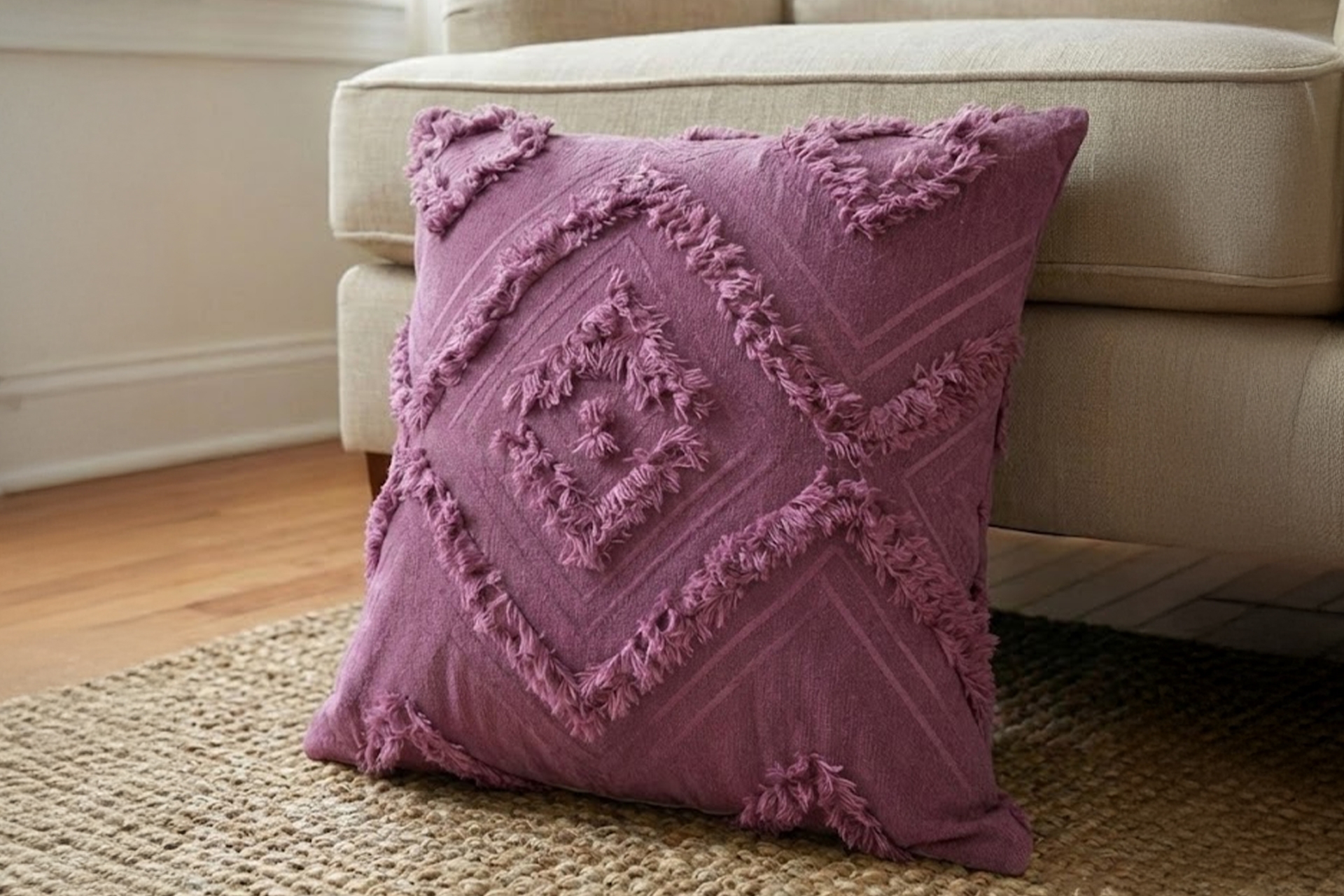 Ek BilgilerBohem Desenli Püsküllü Pamuk Kırlent Kılıfı Mor
