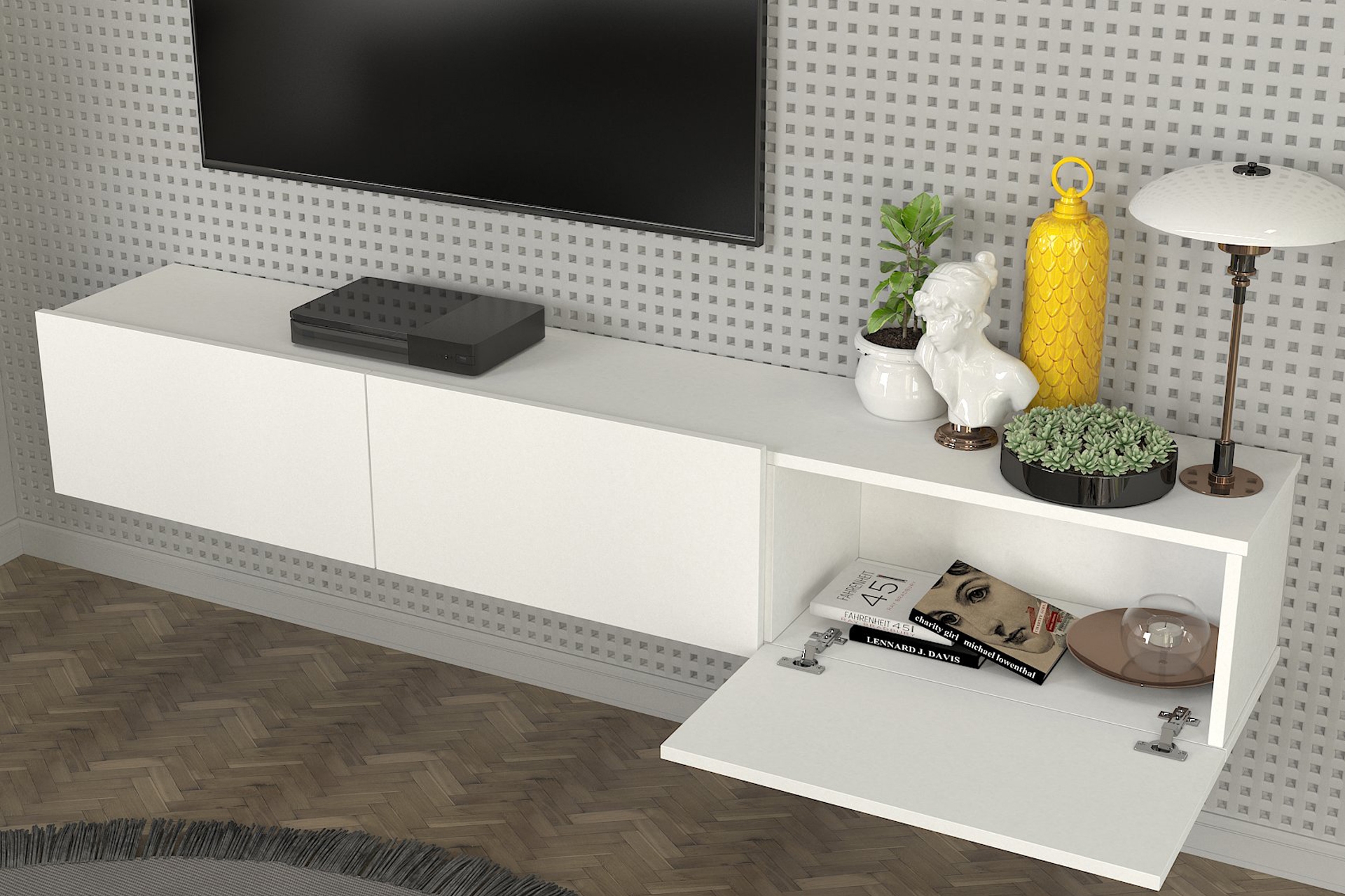 Dorpek Cercei Tv ünitesi LEDli Beyaz 180 cm 31.6 cm 29.5 cm
