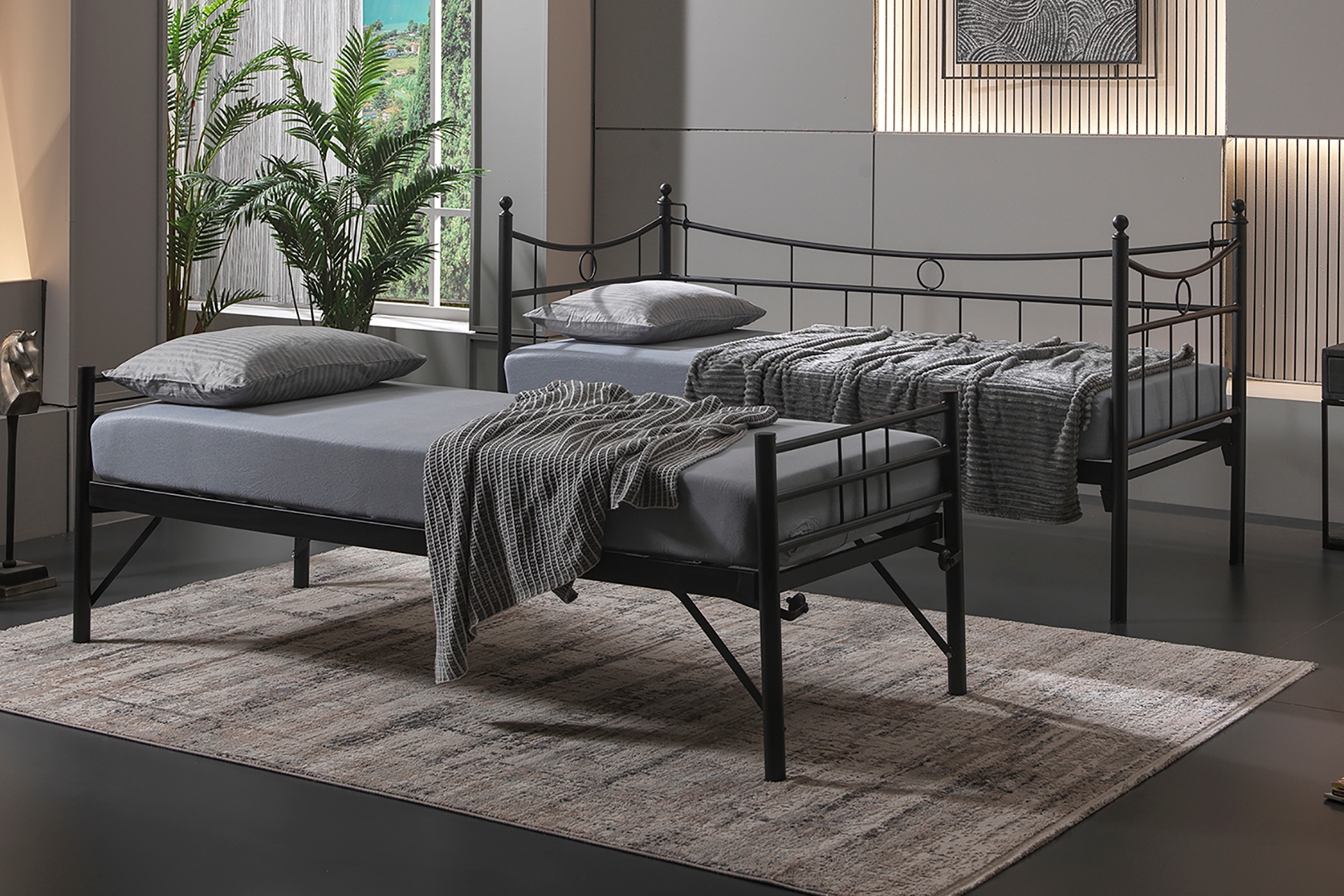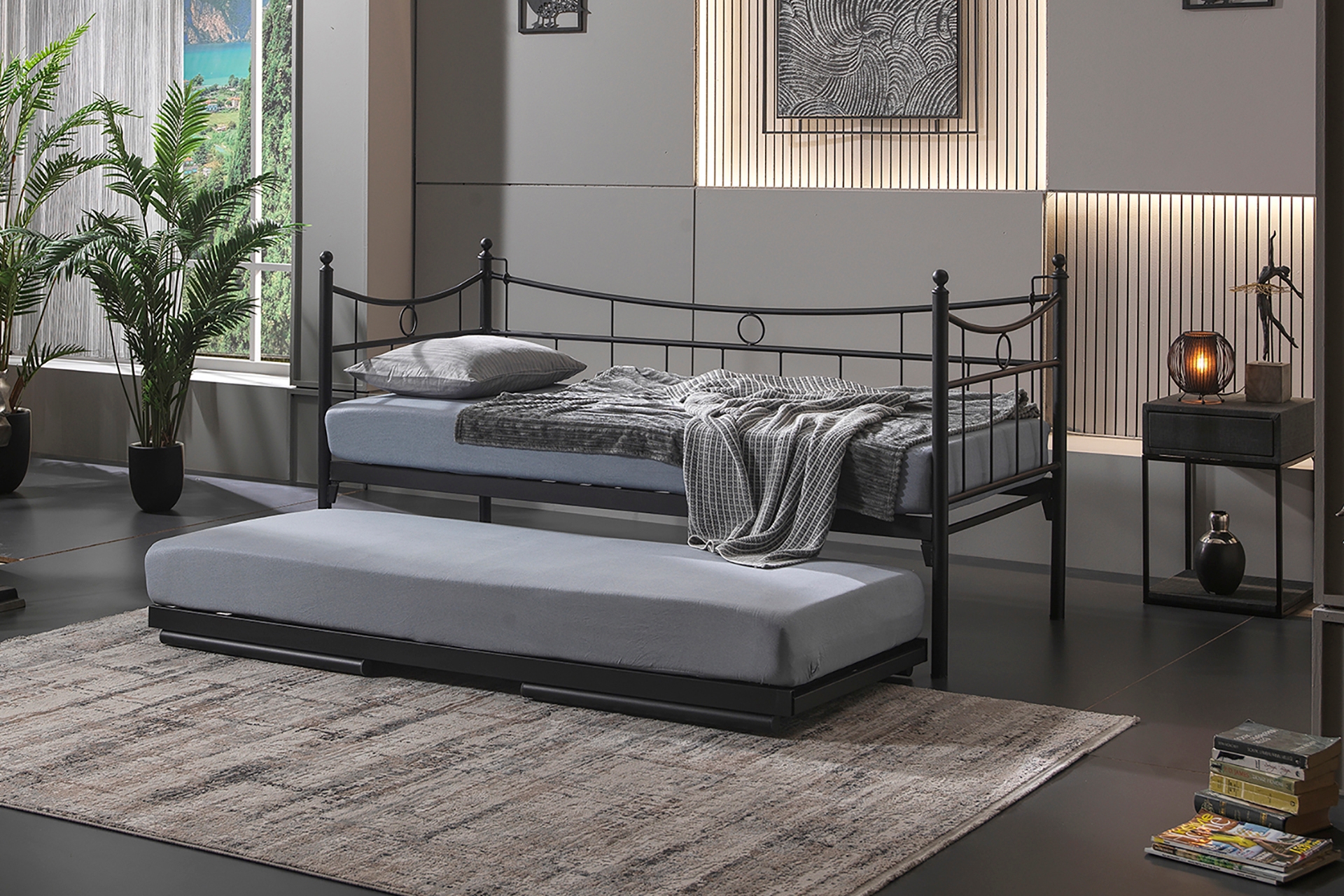 Ek BilgilerYatak fiyata dahil değildir. Kurulum için araç gerece ihtiyaç bulunmamaktadır. Tamamen geçme sistemlidir. Konik geçme sistemi kullanlmaktadır. Yerden Yüksekliği: 35 cm Toplam Yükseklik: 102 cm İki ayrı karyola olarak ya da birleştirerek çift kişilik karyola olarak kullanılabilir. Karyola birleştirme ve yatak tutucu aparatlar gönderilmektedir. Yatak altı platform olarak “PROFİL IZGARA” kullanılmaktadır. NEDEN KONİKLEŞTİRİLMİŞ GEÇME SİSTEM? Metal karyola, sofa, daybed ve ranza gibi ürünlerde, tüketicilerin en sık şikayet ettiği sorunlar zamanla oluşan sallanma ve gıcırdama sesidir. Standart vida veya kızaklı bağlantı sistemleri, zamanla boşluk oluşumuna, dolayısıyla sallanma ve ses problemlerine yol açarlar. Unimet ürünlerinde ise vidalı bağlantı yerine KONİKLEŞTİRİLMİŞ GEÇME SİSTEM kullanılır. Bu sistem hem montajı kolaylaştırır hem de ürün üzerinde oluşan ağırlık ile kilitleme sistemi güçlendirerek, sallanma ve ses sorunlarını ortadan kaldırır.