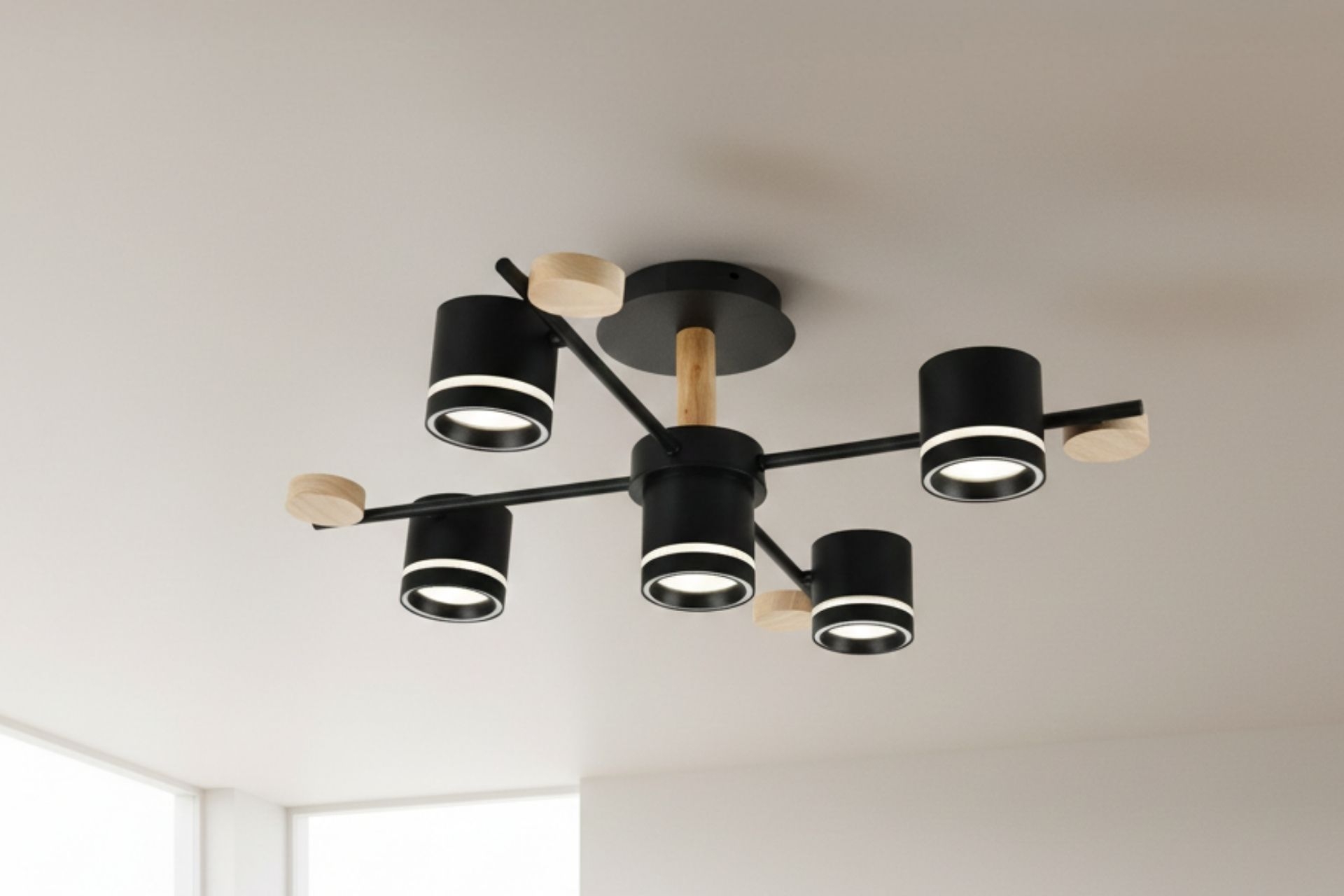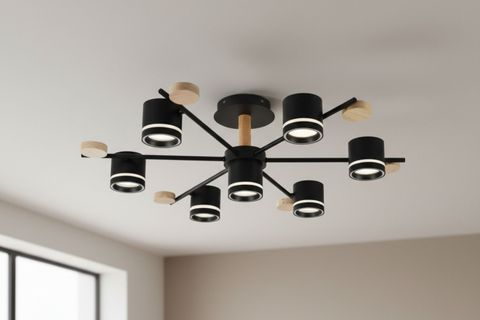 DEHA 4+1 LED PLAFONYER AVİZE - AHŞAP DETAYLI 65 cm 65 cm 25 cm