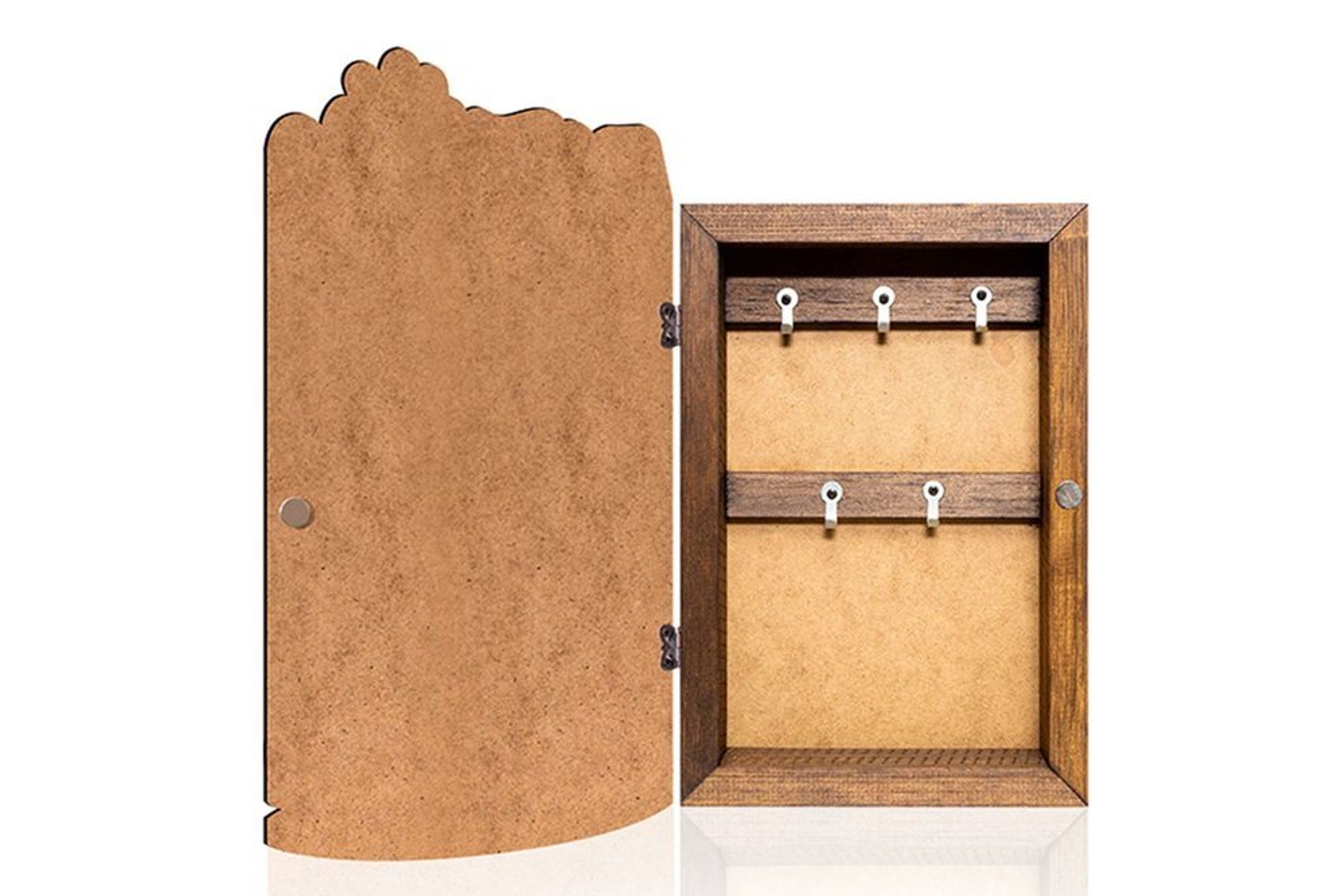 Ek BilgilerEv ve ofis dekorasyonu için sanatsal obje. El yapımıdır. Yapımı 1 saat sürmektedir. Ölçü: 18x39 cm, derinlik: 4,3 cm, kasa 4x2cm. Mıknatıslı kapak 5mm mdf. Kolay açıp kapama. Lazer kesimli, UV dijital baskılı, parlak vernikli. 5 adet anahtar askılığı. Asma aparatı kutuya montelidir.