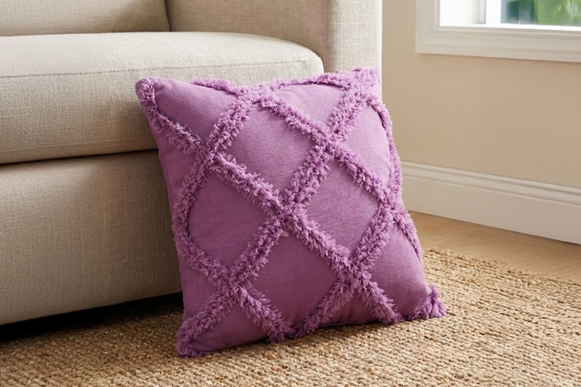 Diamond Püsküllü Pamuk Kırlent Kılıfı Mor 43 cm 2 cm 43 cm