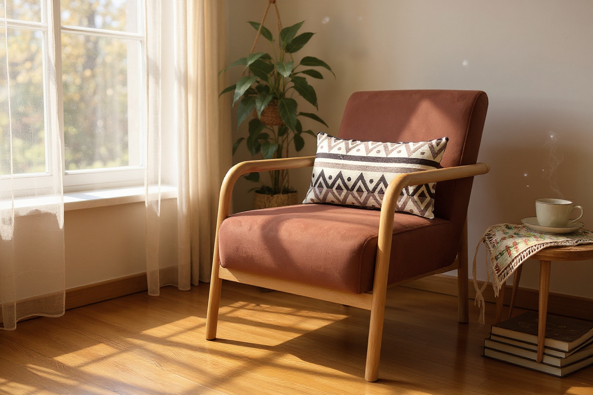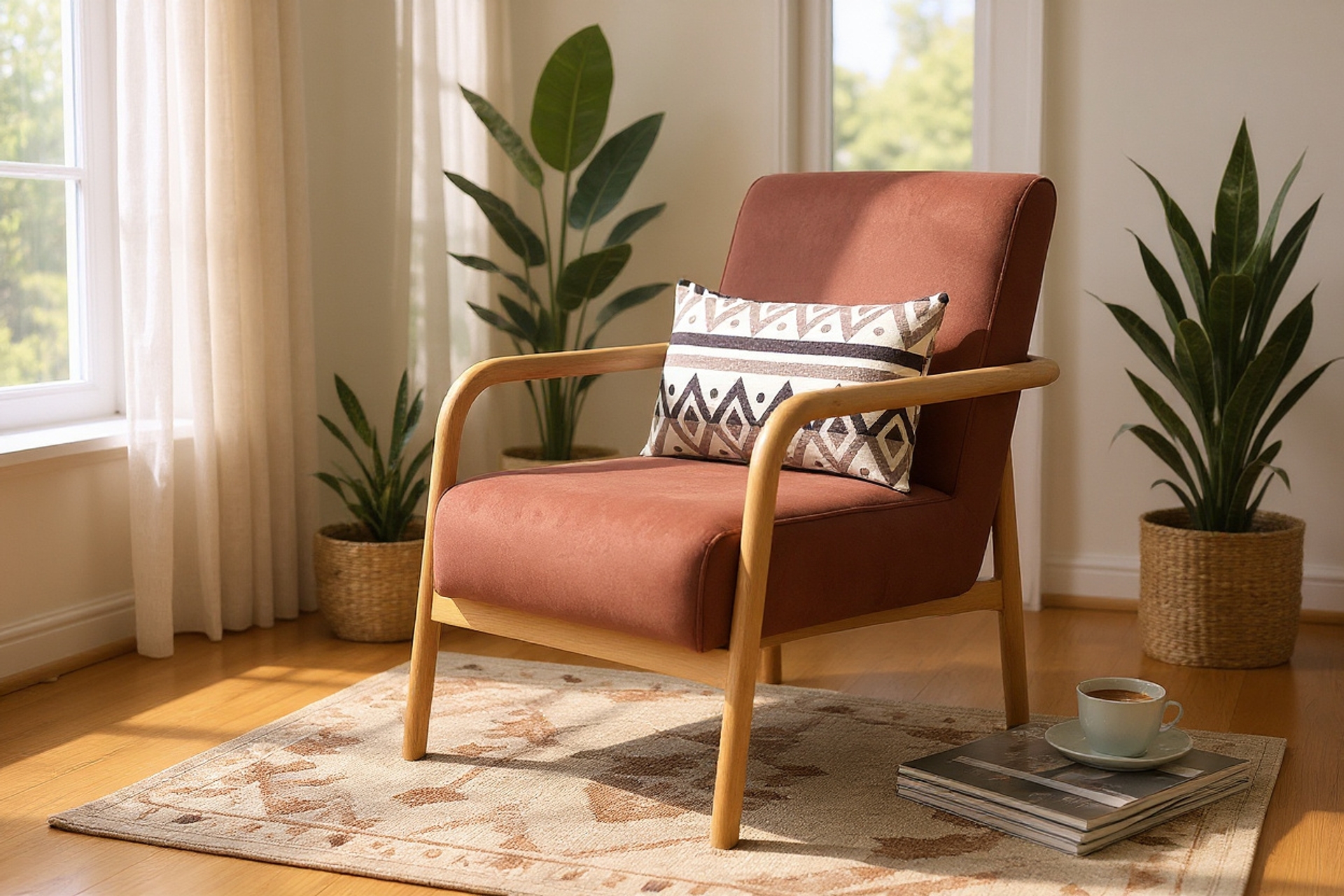 Ek BilgilerDora berberin terracotta versiyonu, evinize Mediterranean sıcaklığı ve İskandinavya zarafeti bir arada getiren mükemmel bir tasarım seçimidir. Bu toprak tonundaki sıcak renk, doğal ahşap iskelet ile birleşerek organic modern estetik sunar ve mekanınıza huzur verici bir atmosfer katar. Terracotta'nın doğal ve zamansız karakteri, hem bohem hem de çağdaş dekorasyonlarda mükemmel uyum gösterir; özellikle beyaz duvarlar, doğal dokular ve yeşil bitkilerle kombinlendiğinde Instagram'da görmeye alıştığınız o mükemmel köşeleri oluşturur. Doğal ahşap iskeletin yumuşak çizgileri, terracotta kumaşın sıcaklığıyla birleşerek eve dönüş hissi verir. Eklenen etnik desenli yastık, Dora'nın kişilik katmanını tamamlar ve size stil esnekliği sunar. Premium kaliteli kumaş ve ergonomik tasarımı sayesinde uzun saatler rahat oturabilir, sabah kahvenizden akşam kitap okuma seanslarınıza kadar her anınızı konforla geçirebilirsiniz. Dora, sadece mobilya değil; evinizin ruhunu yansıtan, misafirlerinizin hayranlıkla bakacağı ve sizin de her gün eve geldiğinizde gülümseyeceğiniz özel bir yaşam parçasıdır.