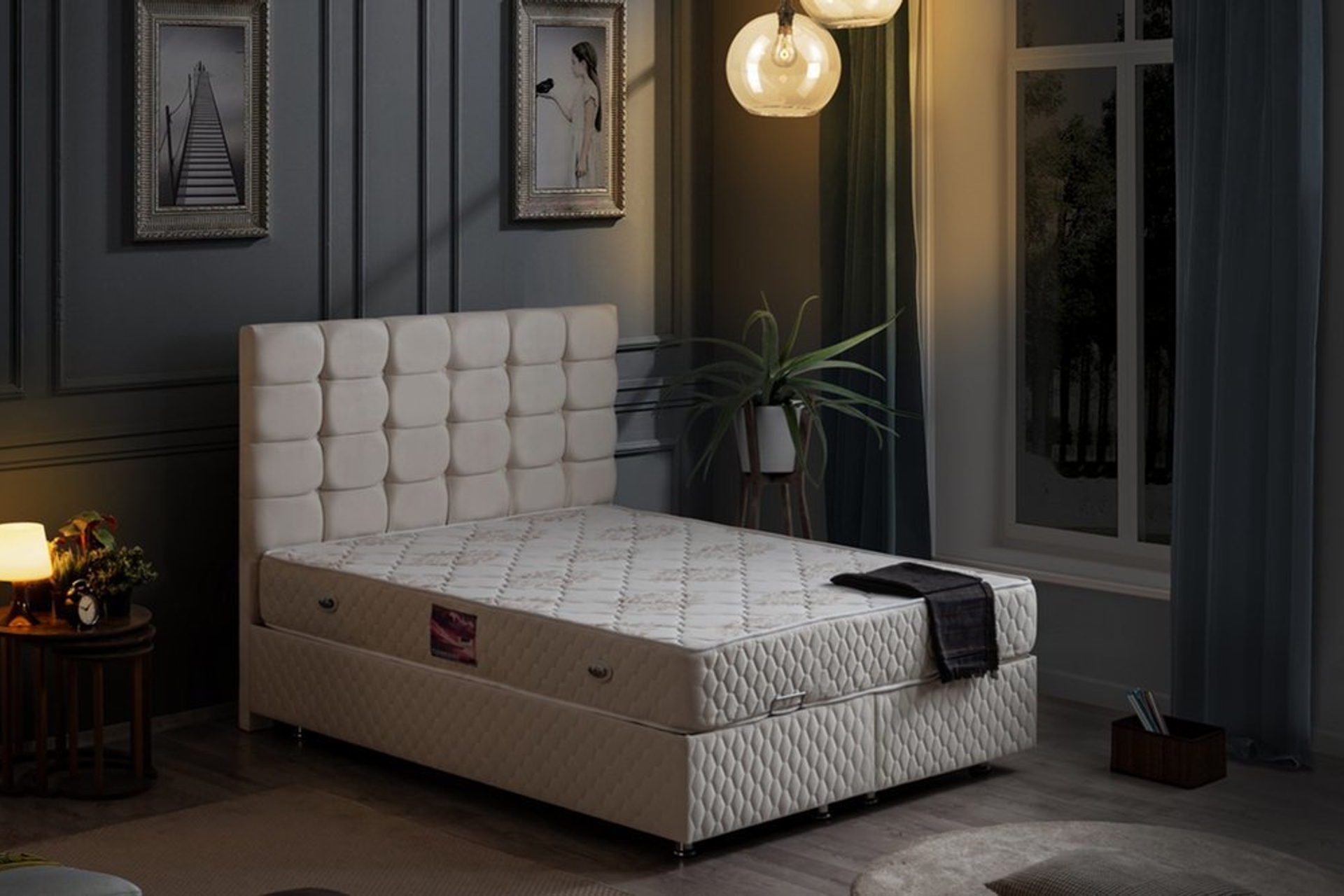 Ek BilgilerTakım içeriği baza, başlık ve yataktan oluşmaktadır. Vücut ağırlığını dengeli bir biçimde tüm yaylara dağıtmasını sağlar. Kullanılan yay sistemi Bonel Yay sistemidir. Uyku konforunu arttıran yüksek dirençli form sünger kullanılmıştır. Yatak yüksekliği yaklaşık 25 cm'dir.