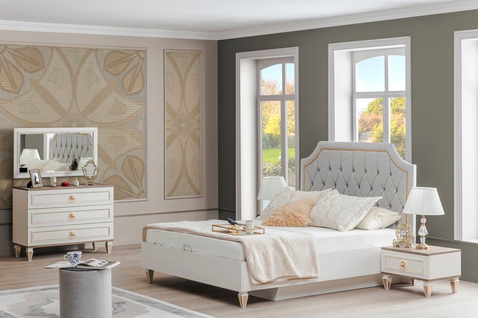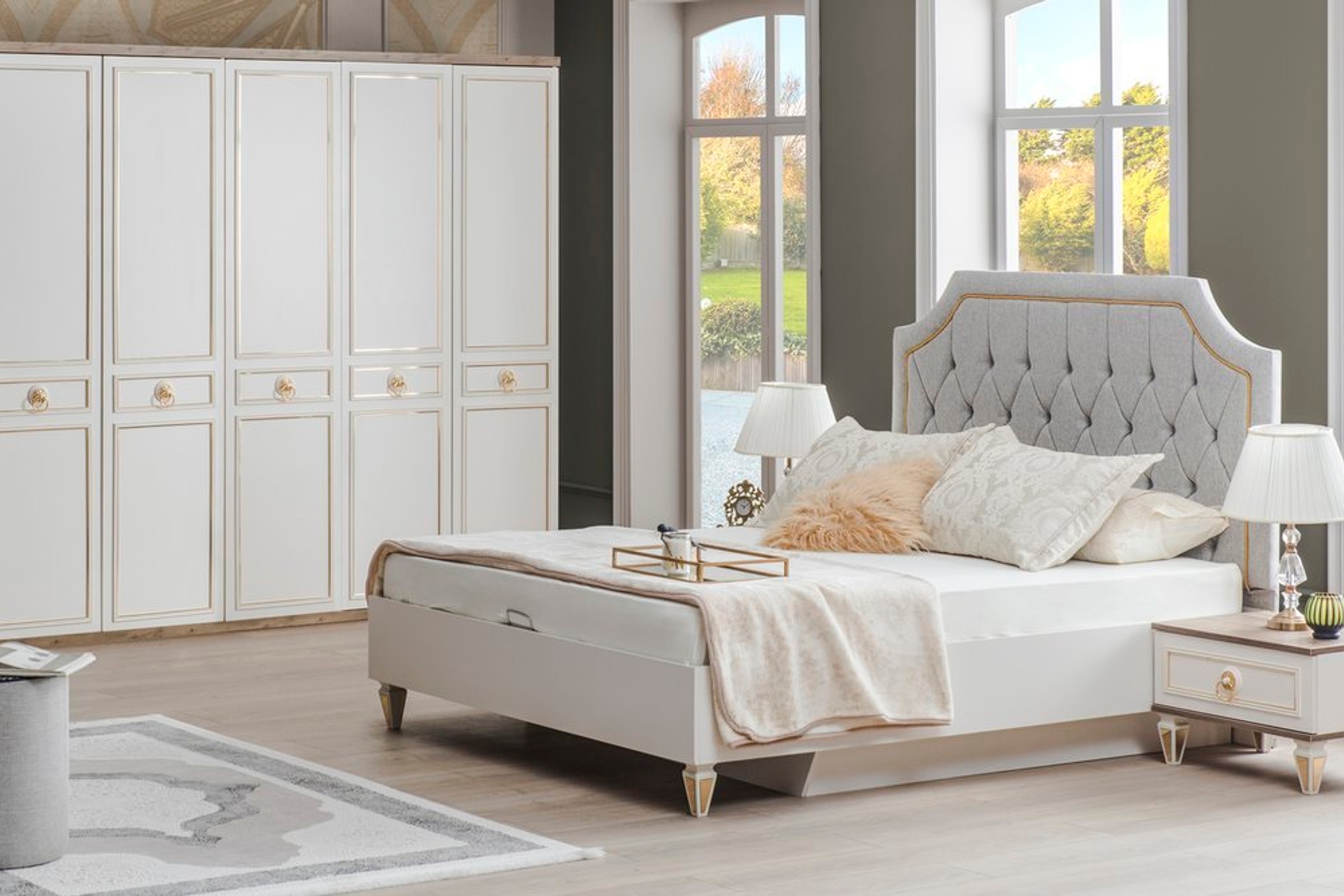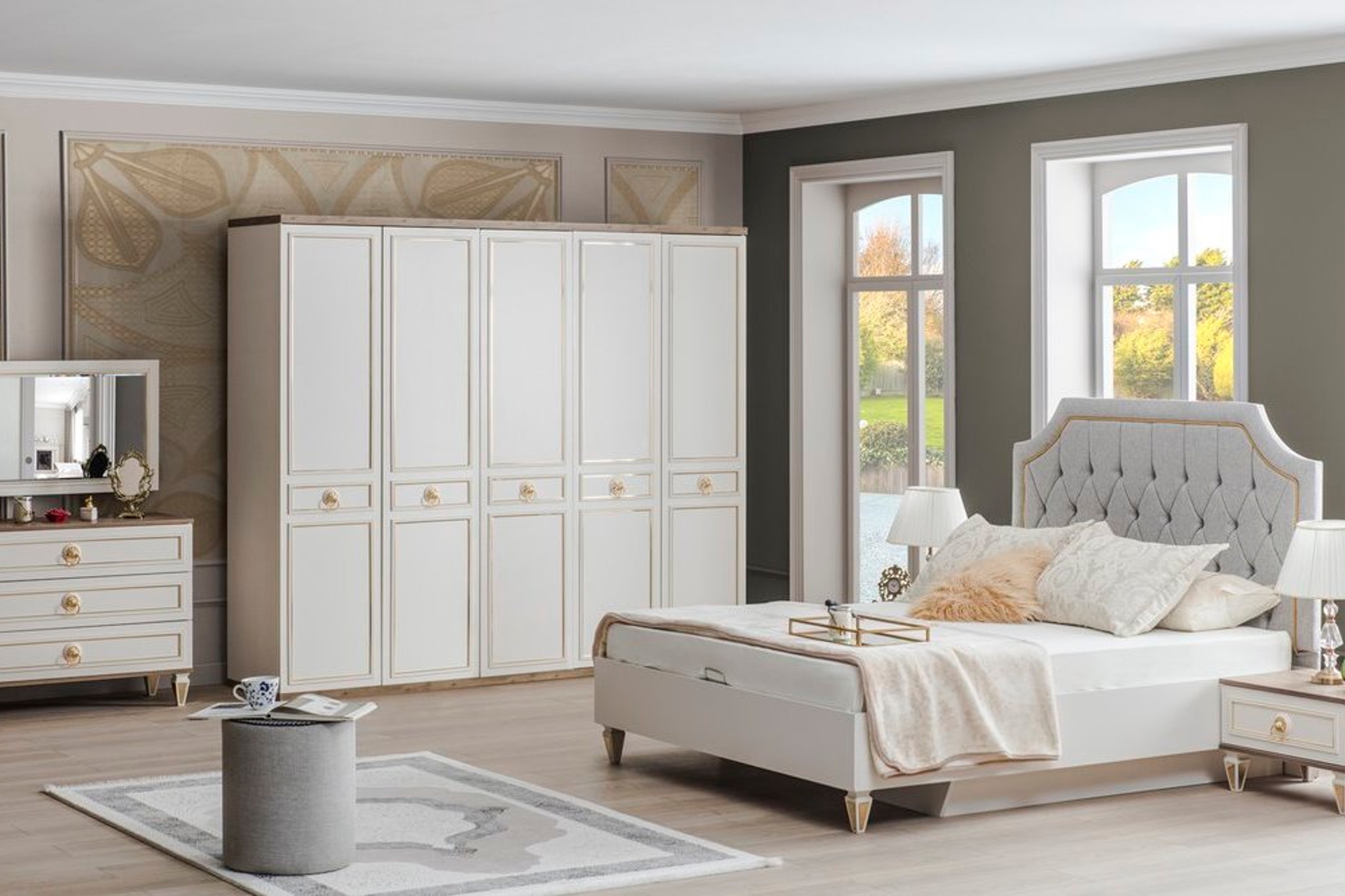 Takım İçeriğiTakım içeriği 1 adet Gardırop, 1 adet Karyola, 2 adet Komodin ve 1 adet Şifonyer + aynasından oluşmaktadır.