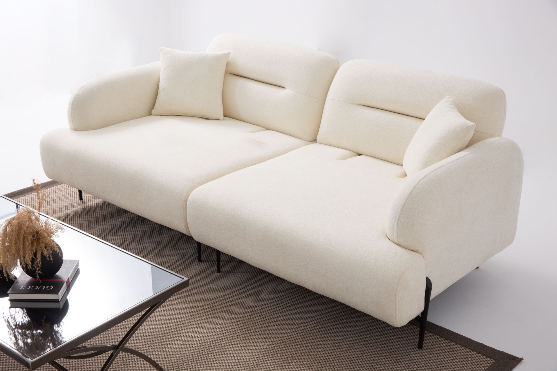 Ellas Üçlü Koltuk; zarif tasarımı ile dikkat çekiyor. Bu özel tasarım, aynı zamanda yumuşak oturumu ile konforlu bir oturma deneyimi sunarak, şıklığı ve pratik kullanımı bir araya getiriyor.