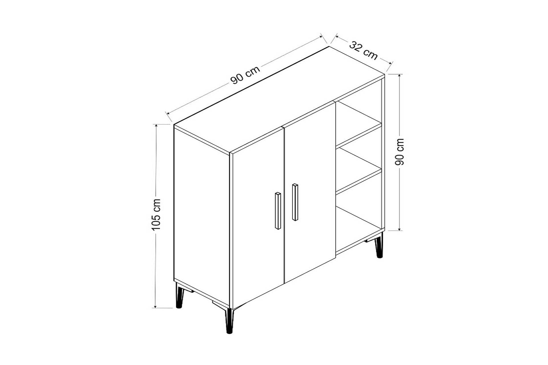 Ek BilgilerYükseklik:105 cm Derinlik:32 cm Genişlik:90 cm Malzeme Ahşap Raf Sayısı:7 Raflı Tasarım Klasik Derinlik:32cm iç ve 34cm kapak dahil 15cm ayak yüksekliği ve ideal derinliği ile ayakkabılık, dosya ve evrak dolabı, mutfak ve banyo dolabı olarak kullanıma uygun Çok Amaçlı Dolap.... Ürün 18 mm kalınlığında suntalam malzeme kullanılarak üretilmiştir. Ürün 1 paket halinde sevk edilmektedir. Ürün demonte gönderilmekte olup, kolay kurulum için gerekli kurulum şeması tüm vida ve aksesuarları montaj şeması ile gönderilmektedir.