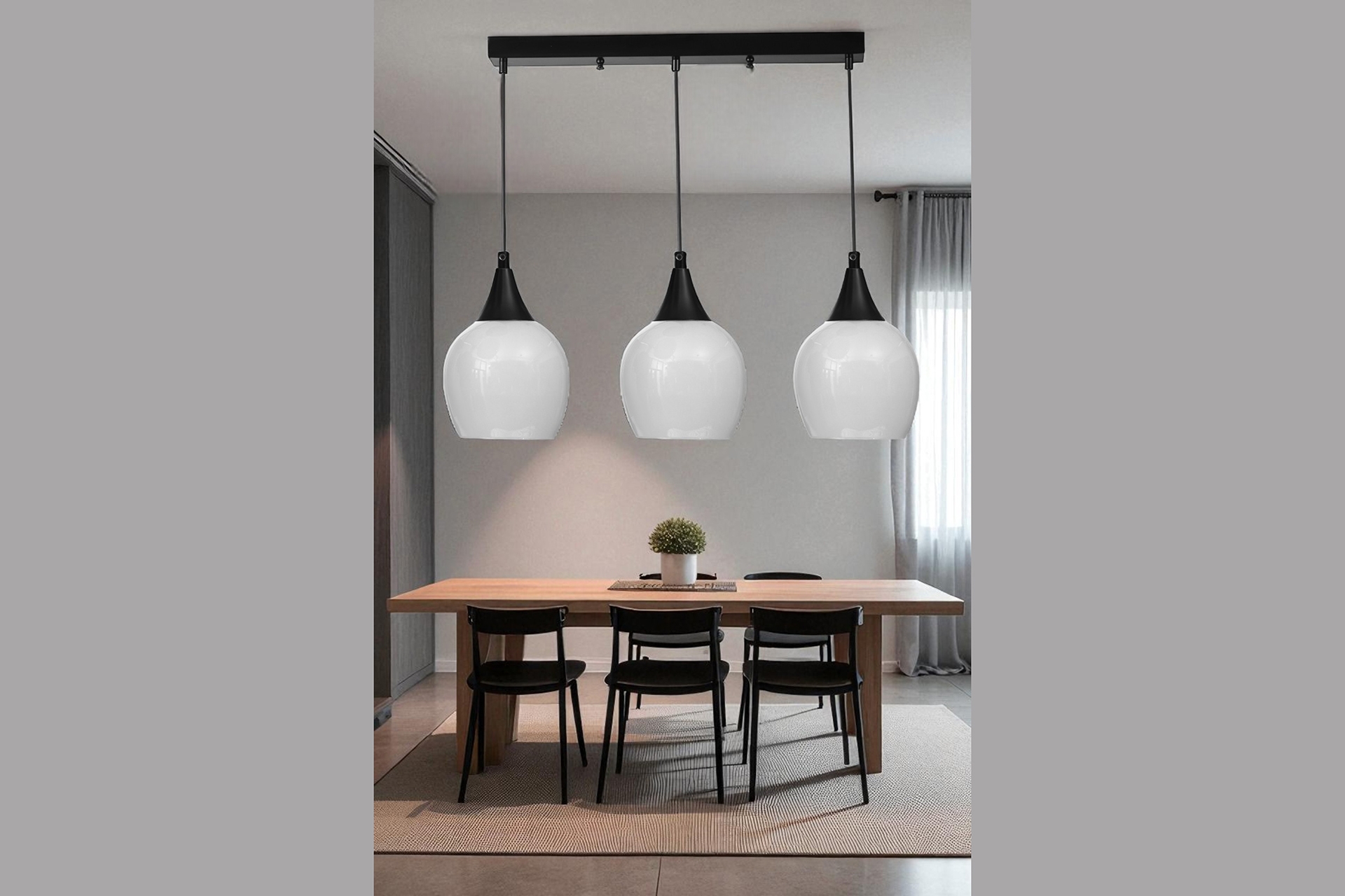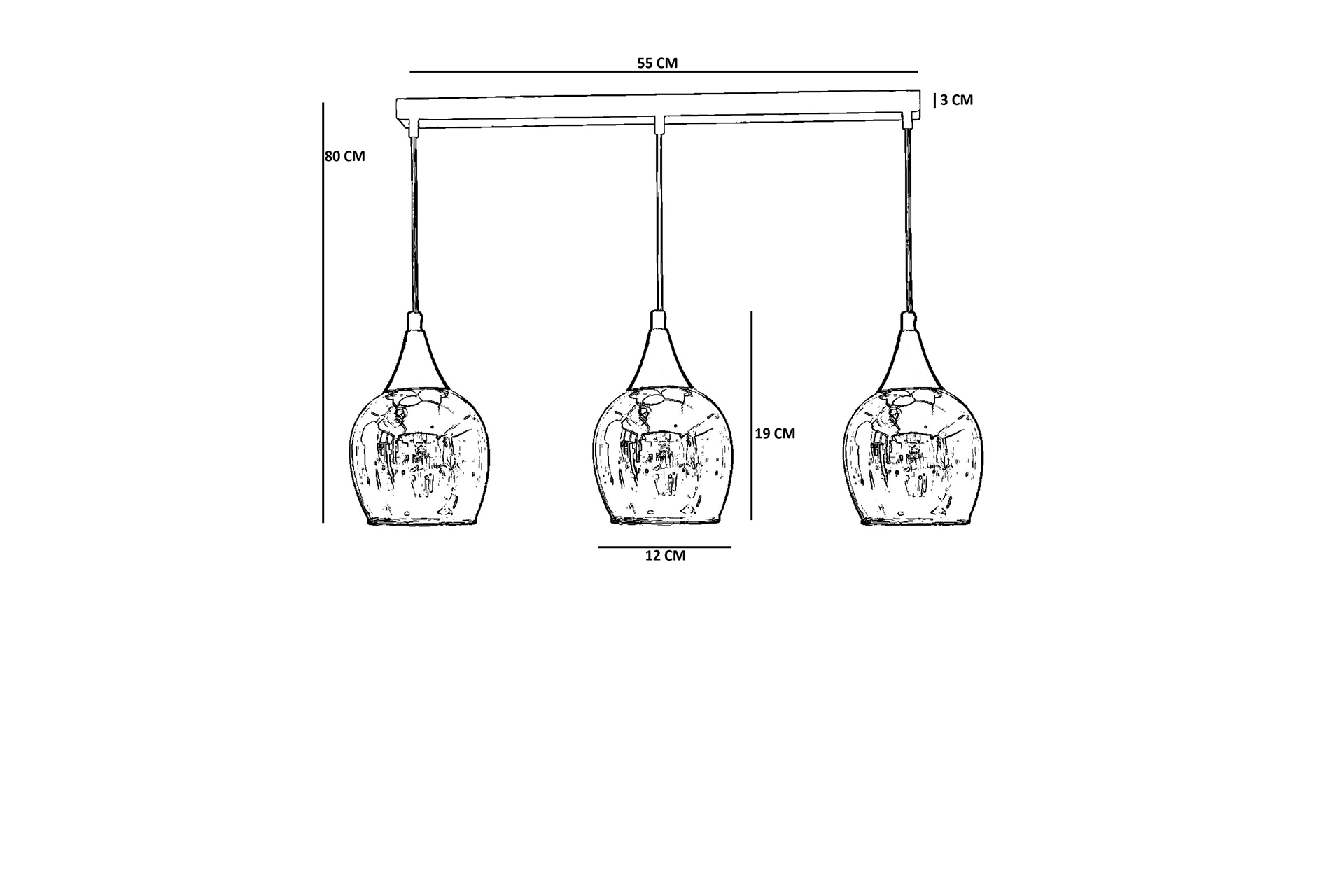 ENZO 3 LÜ SIRALI SİYAH BEYAZ CAMLI SARKIT 55 cm 1 cm 80 cm