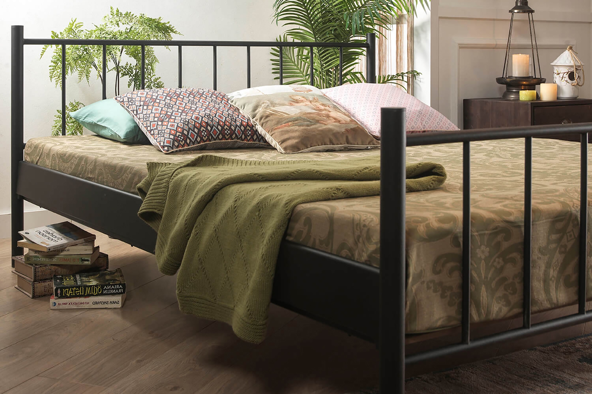 Ek BilgilerYatak fiyata dahil değildir. Kurulum için araç gerece ihtiyaç bulunmamaktadır. Tamamen geçme sistemlidir. Konik geçme sistemi kullanlmaktadır. Yerden Yüksekliği: 24 cm Başlık Yüksekliği: 85 cm Ayakucu Yüksekliği:65 cm Yatak Yuvası Derinliği: 11 cm Yatak altı platform olarak “AHŞAP LATA” kullanılmaktadır. NEDEN AHŞAP LATA? Kayın plakaların preslenmesiyle oluşturulduğundan esneme kabiliyetine sahiptir. Esnemenin getirdiği ekstra konfor sağlar. Avrupa ve Amerika’da tercih edilen yatak altı platformudur. Yatağın alttan hava almasını sağlar. Mukavemet sağlar. Montajı kolaydır. NEDEN KONİKLEŞTİRİLMİŞ GEÇME SİSTEM? Metal karyola, sofa, daybed ve ranza gibi ürünlerde, tüketicilerin en sık şikayet ettiği sorunlar zamanla oluşan sallanma ve gıcırdama sesidir. Standart vida veya kızaklı bağlantı sistemleri, zamanla boşluk oluşumuna, dolayısıyla sallanma ve ses problemlerine yol açarlar. Unimet ürünlerinde ise vidalı bağlantı yerine KONİKLEŞTİRİLMİŞ GEÇME SİSTEM kullanılır. Bu sistem hem montajı kolaylaştırır hem de ürün üzerinde oluşan ağırlık ile kilitleme sistemi güçlendirerek, sallanma ve ses sorunlarını ortadan kaldırır. Ayrıca, özel bükülmüş yan sac traversler ve ters kilitli borular sayesinde esneme önlenir ve ahşap lata plakalar ile yatağın hava alması sağlanarak konfor artırılır