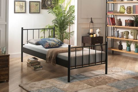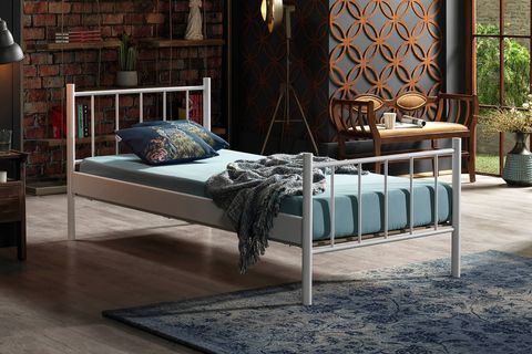 Ek BilgilerYatak fiyata dahil değildir. Kurulum için araç gerece ihtiyaç bulunmamaktadır. Tamamen geçme sistemlidir. Konik geçme sistemi kullanlmaktadır. Yerden Yüksekliği: 24 cm Başlık Yüksekliği: 85 cm Ayakucu Yüksekliği:65 cm Yatak Yuvası Derinliği: 11 cm Yatak altı platform olarak “AHŞAP LATA” kullanılmaktadır. NEDEN AHŞAP LATA? Kayın plakaların preslenmesiyle oluşturulduğundan esneme kabiliyetine sahiptir. Esnemenin getirdiği ekstra konfor sağlar. Avrupa ve Amerika’da tercih edilen yatak altı platformudur. Yatağın alttan hava almasını sağlar. Mukavemet sağlar. Montajı kolaydır. NEDEN KONİKLEŞTİRİLMİŞ GEÇME SİSTEM? Metal karyola, sofa, daybed ve ranza gibi ürünlerde, tüketicilerin en sık şikayet ettiği sorunlar zamanla oluşan sallanma ve gıcırdama sesidir. Standart vida veya kızaklı bağlantı sistemleri, zamanla boşluk oluşumuna, dolayısıyla sallanma ve ses problemlerine yol açarlar. Unimet ürünlerinde ise vidalı bağlantı yerine KONİKLEŞTİRİLMİŞ GEÇME SİSTEM kullanılır. Bu sistem hem montajı kolaylaştırır hem de ürün üzerinde oluşan ağırlık ile kilitleme sistemi güçlendirerek, sallanma ve ses sorunlarını ortadan kaldırır. Ayrıca, özel bükülmüş yan sac traversler ve ters kilitli borular sayesinde esneme önlenir ve ahşap lata plakalar ile yatağın hava alması sağlanarak konfor artırılır