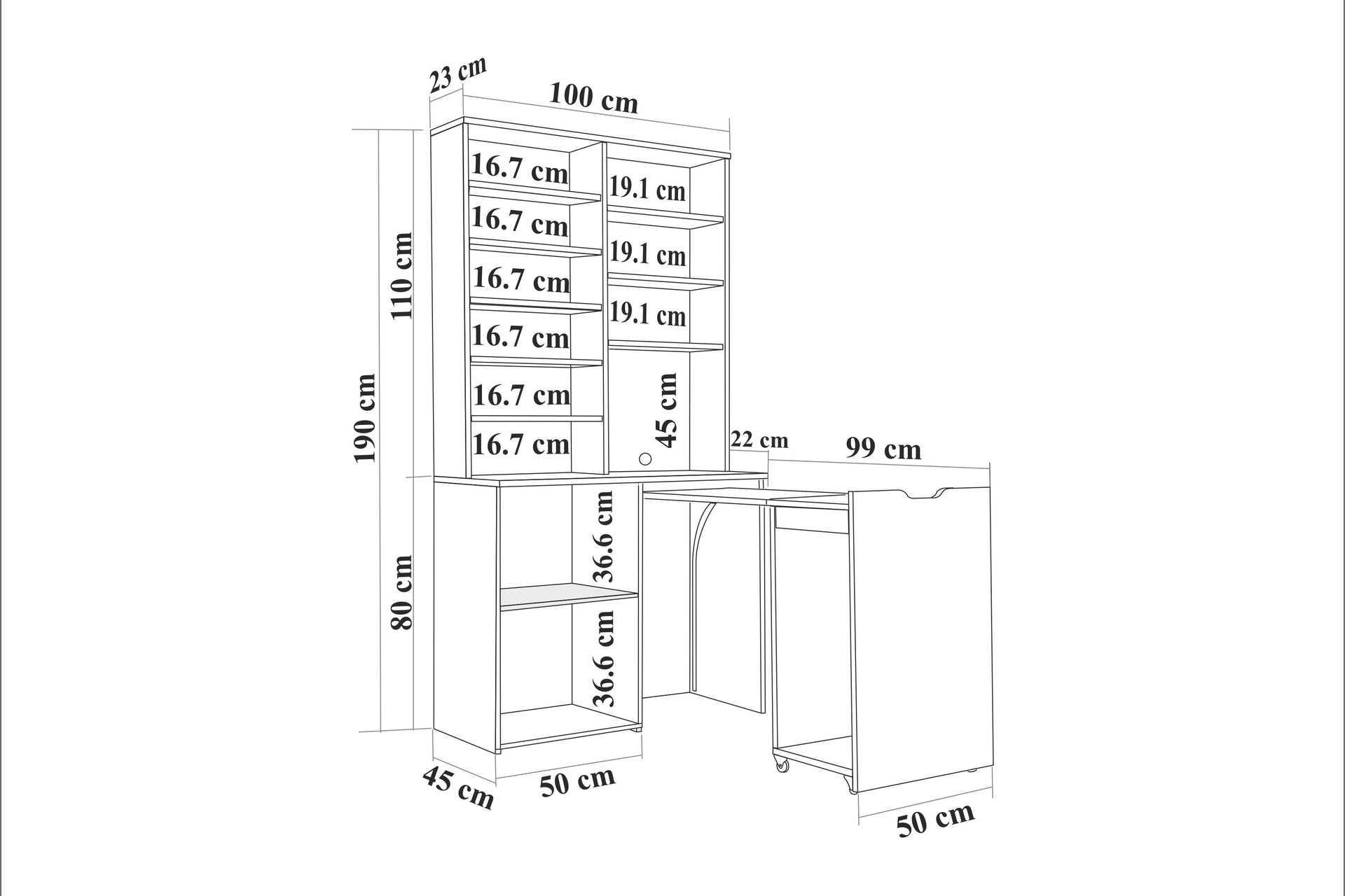 FLEXA 100 cm 45 cm 190 cm