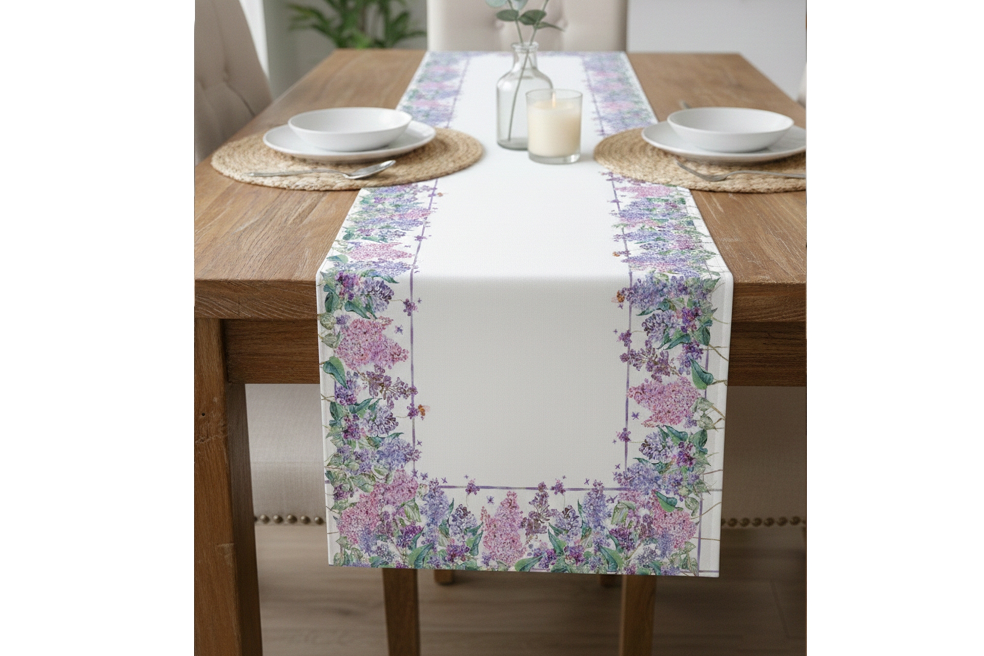 Flora Lila Pamuklu Masa Runner 0058– 50x150 cm 50 cm 150 cm 1 cm