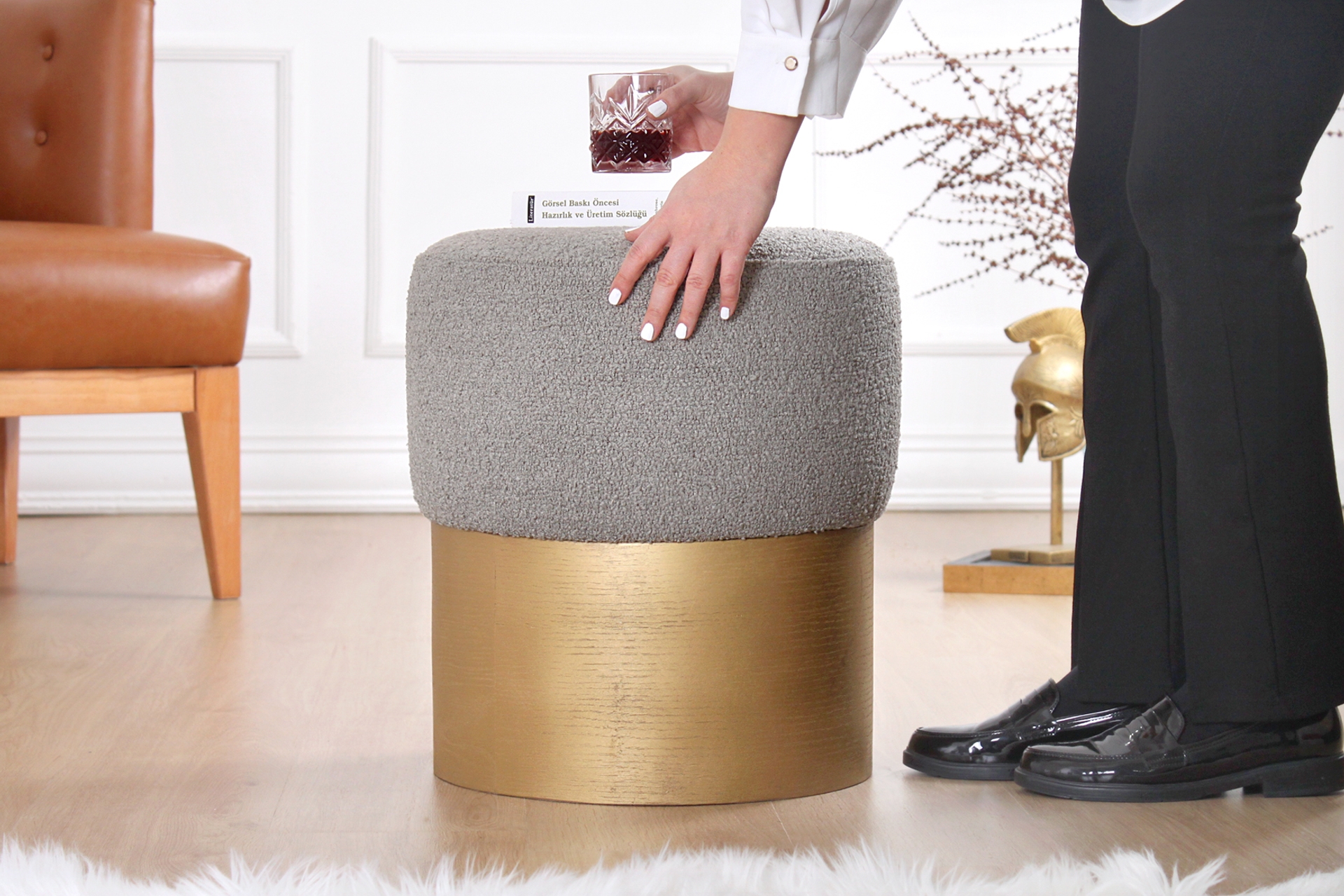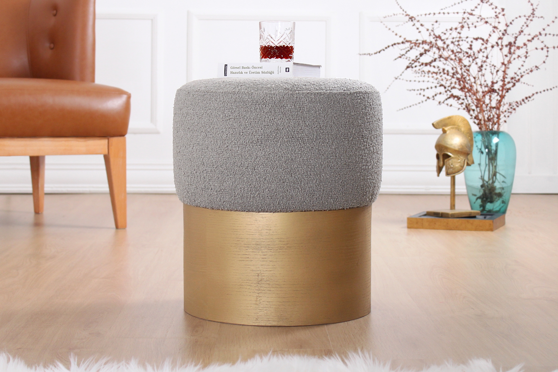 Ek BilgilerIşıltılı Tasarım! Modern formu dekorasyonda lüks bir hava yaratan altın tonu ahşap ayağı ile bir çok renkle kombine edilebilen 'Glasnog Puflar'.. Seçkin dokuma buklet kumaşı ile mat lake altın boyası onu mekanın odak noktası yapıyor.. 135kg ağırlık kapasitesi ile en şık en konforlu ek oturma alanı yaratın yada sehpa gibi kullanın...