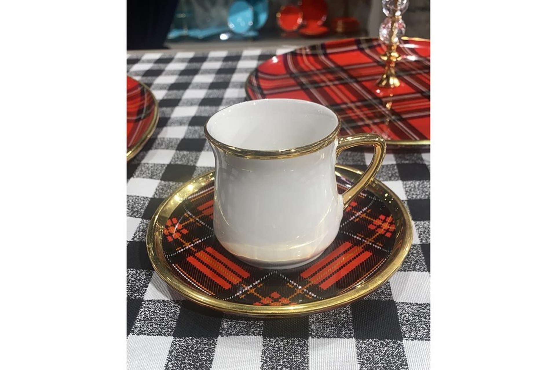 Ek BilgilerTabak ve bardak cam malzemeden üretilmiştir. . Set içeriği 6 adet kahve fincan tabağı ve 6 adet kahve fincanından oluşmaktadır. Tabak desenleri renk uygulamaları el işçiliği ile yapılmaktadır. Orta kısımları çökertme cam şeklinde baskı uygulamasıdır. Fincan porselendir. Tabak çapı: 13 cm, Fincan yüksekliği 5.5 cm, Fincan ölçüsü 85 cc'dir. Altın yaldız uygulaması bulunmaktadır. Çok küçük oranda altın tozu kullanılmıştır.Elde yıkama önerilmektedir.