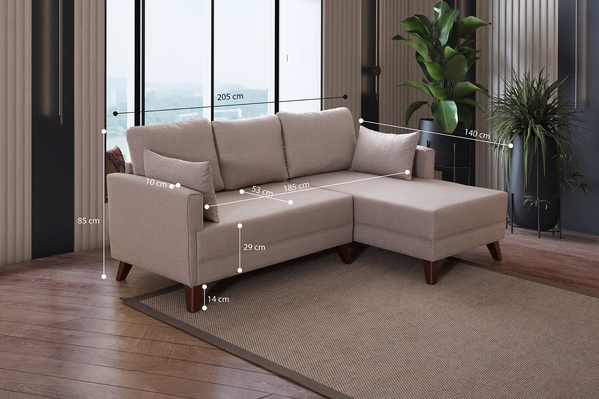 KÖŞE MODÜL 205 cm 140 cm 85 cm