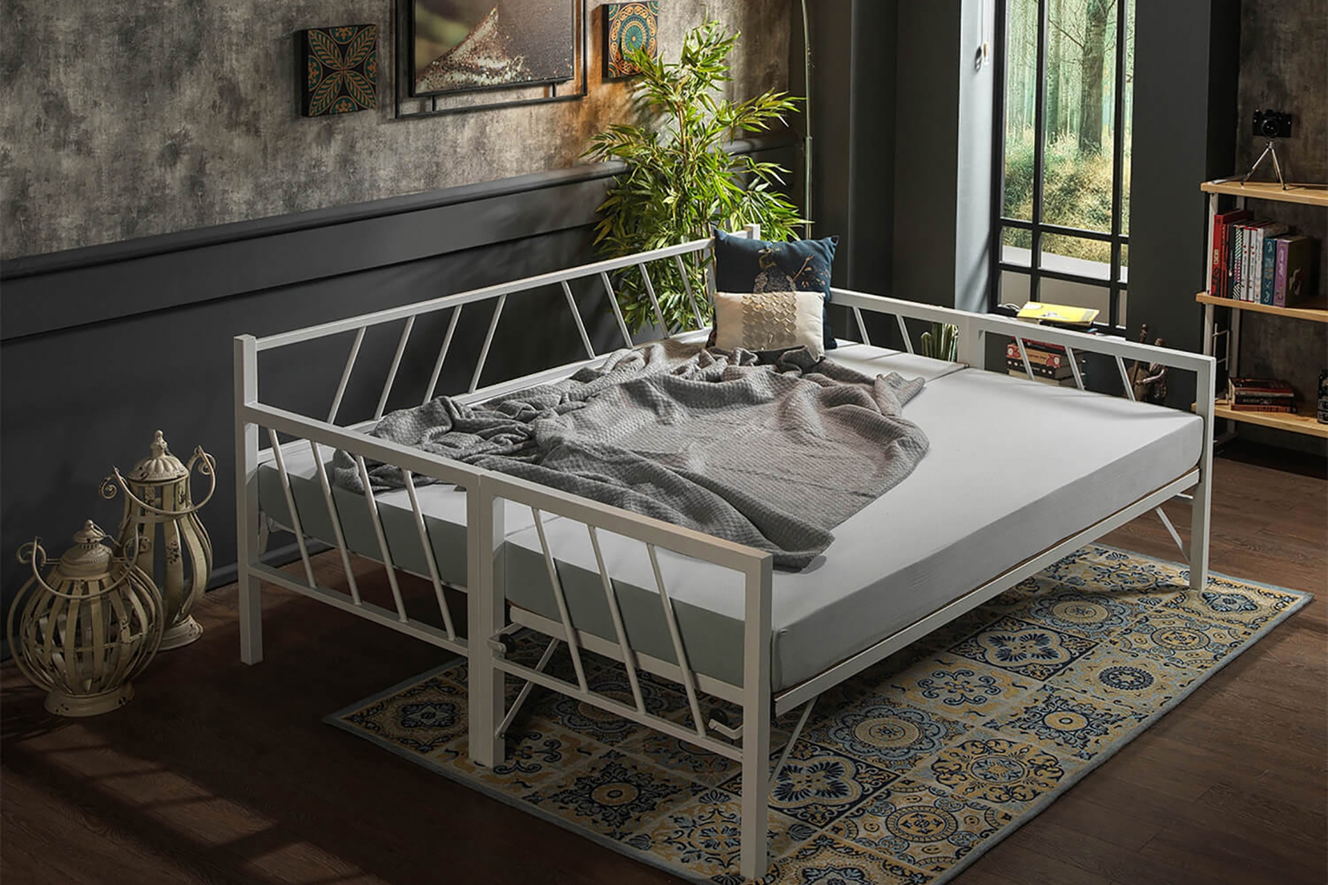 Ek BilgilerYatak fiyata dahil değildir. Yerden Yüksekliği: 35 cm Toplam Yükseklik: 86 cm İki ayrı karyola olarak ya da birleştirerek çift kişilik karyola olarak kullanılabilir. Karyola birleştirme ve yatak tutucu aparatlar gönderilmektedir. Yatak altı platform olarak “PROFİL IZGARA” kullanılmaktadır. NEDEN KONİKLEŞTİRİLMİŞ GEÇME SİSTEM? Metal karyola, sofa, daybed ve ranza gibi ürünlerde, tüketicilerin en sık şikayet ettiği sorunlar zamanla oluşan sallanma ve gıcırdama sesidir. Standart vida veya kızaklı bağlantı sistemleri, zamanla boşluk oluşumuna, dolayısıyla sallanma ve ses problemlerine yol açarlar. Unimet ürünlerinde ise vidalı bağlantı yerine KONİKLEŞTİRİLMİŞ GEÇME SİSTEM kullanılır. Bu sistem hem montajı kolaylaştırır hem de ürün üzerinde oluşan ağırlık ile kilitleme sistemi güçlendirerek, sallanma ve ses sorunlarını ortadan kaldırır.