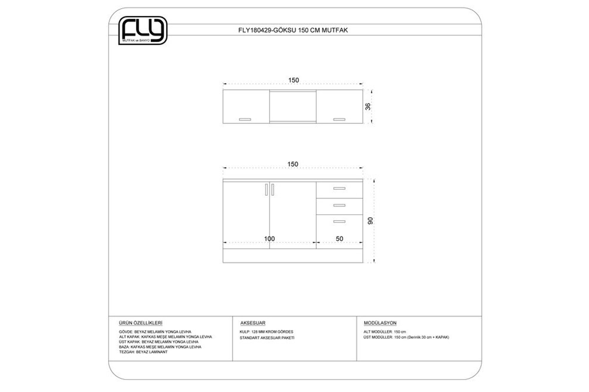ÜST DOLAP 150 cm 32 cm 36 cm