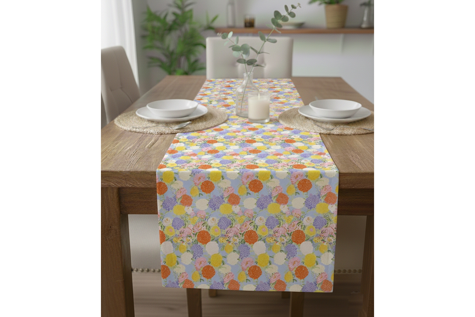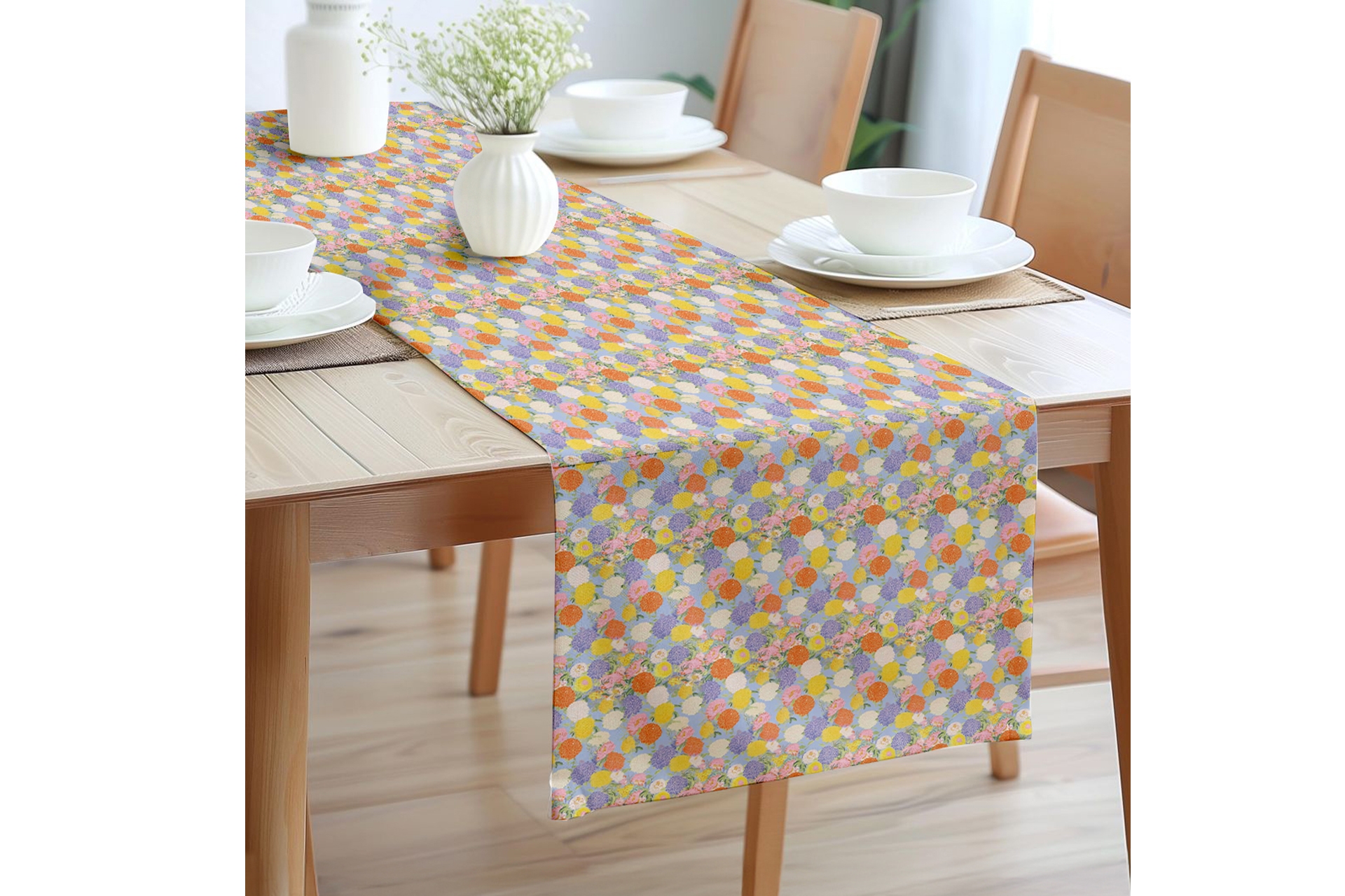 Gökkuşağı Bahçesi Pamuklu Masa Runner 0093– 50x150 cm 50 cm 150 cm 1 cm
