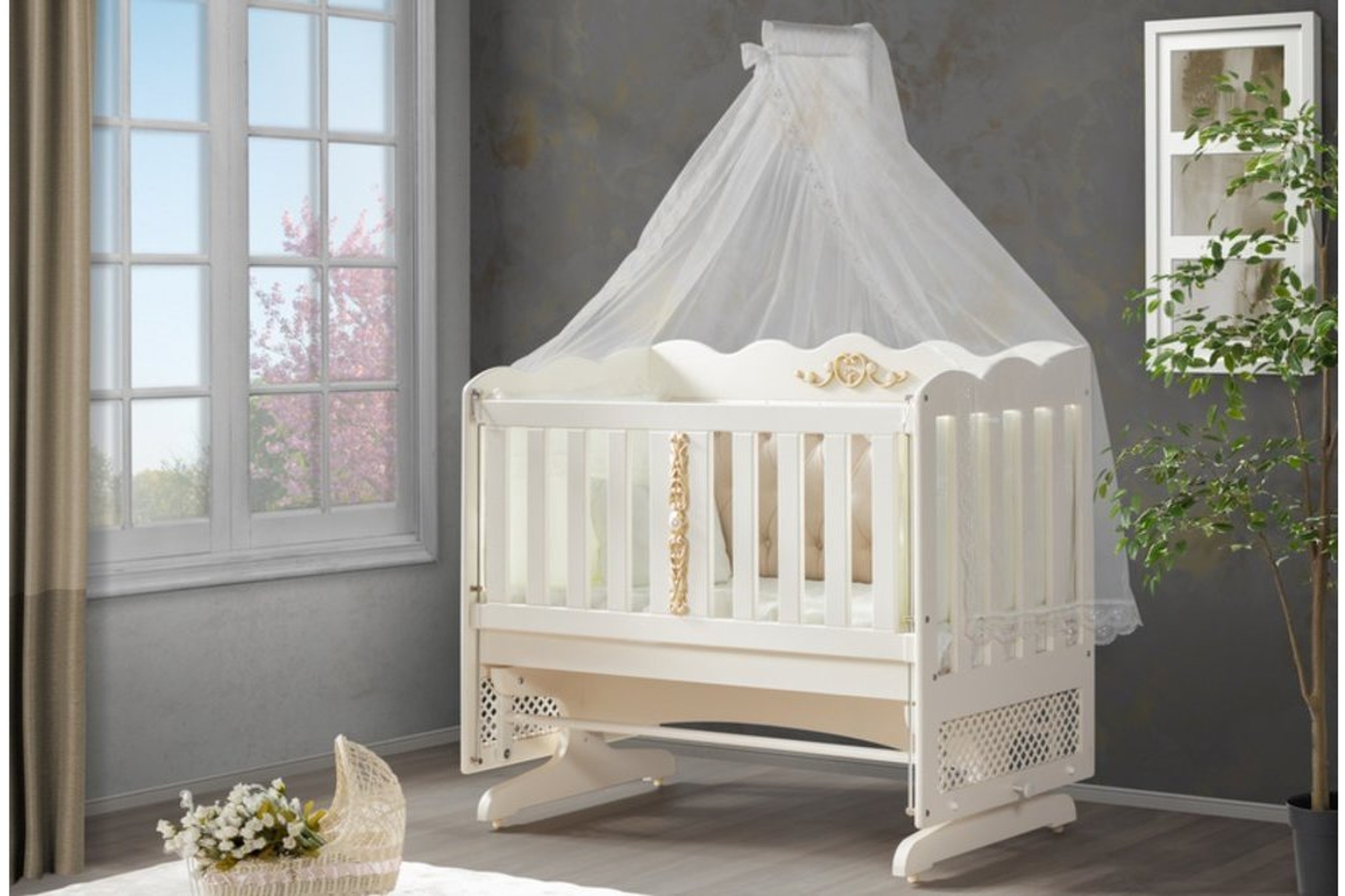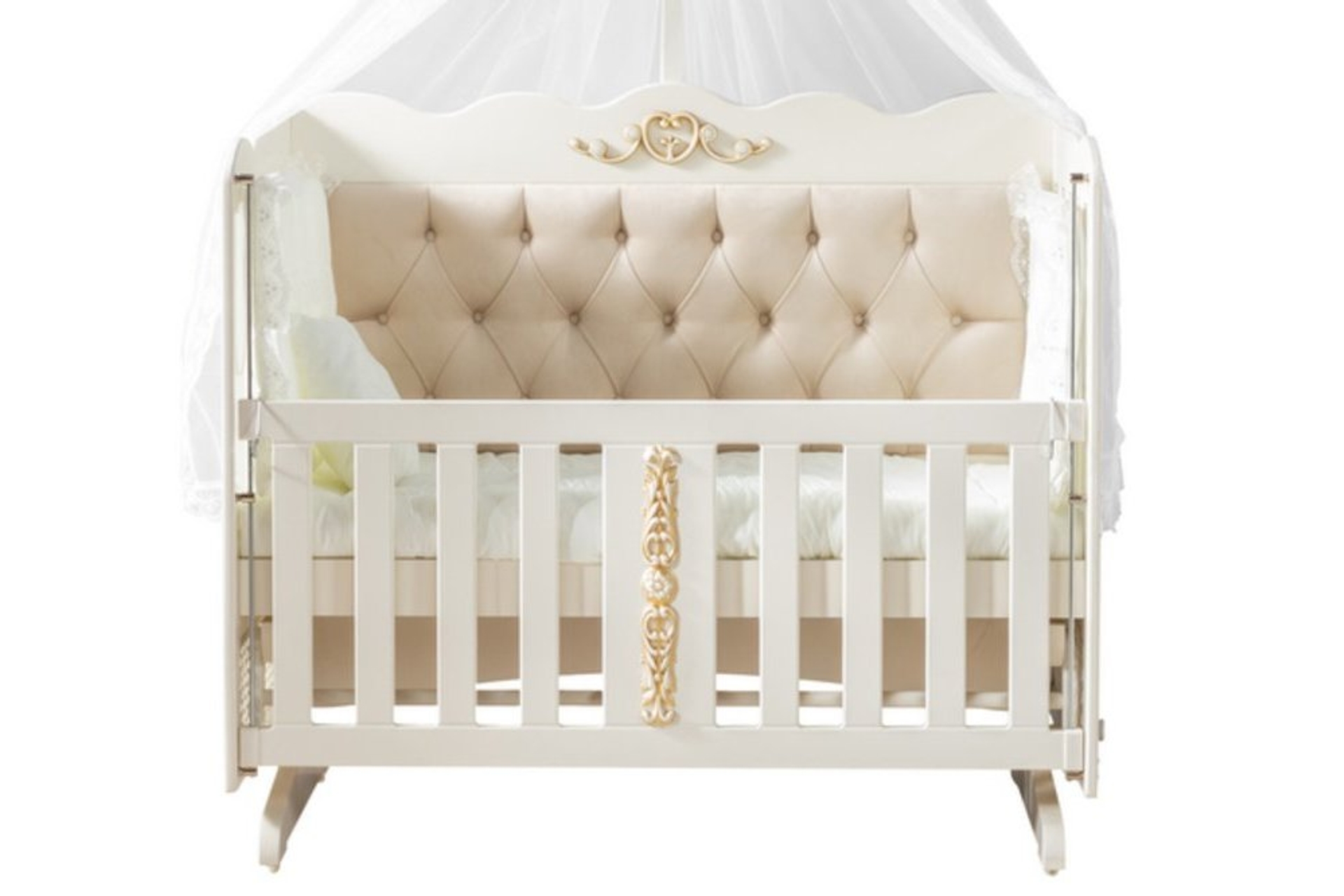 Ek Bilgiler-Beşik %100 mdf lake boyalıdır. -Tekerleklidir, taşıma kolaylığına sahiptir. -Sabitlenebilir. -Asansörlüdür, karyolanızın izasına rahatlıkla getirebilirsiniz. -1.sınıf hammadde kullanılır. -30 mm ayak kalınlığına sahiptir. -Malzeme kalınlığı 18 mm dir. -Silme boyalı özel aplikler kullanılır. -Bağlantı ekipmanlı montaj sistemi ile demonte ürünü çok rahat kurma imkanı sağlar. -İçi kapitonelidir. -İç yatak ölçüsü 60*120 cm dir.