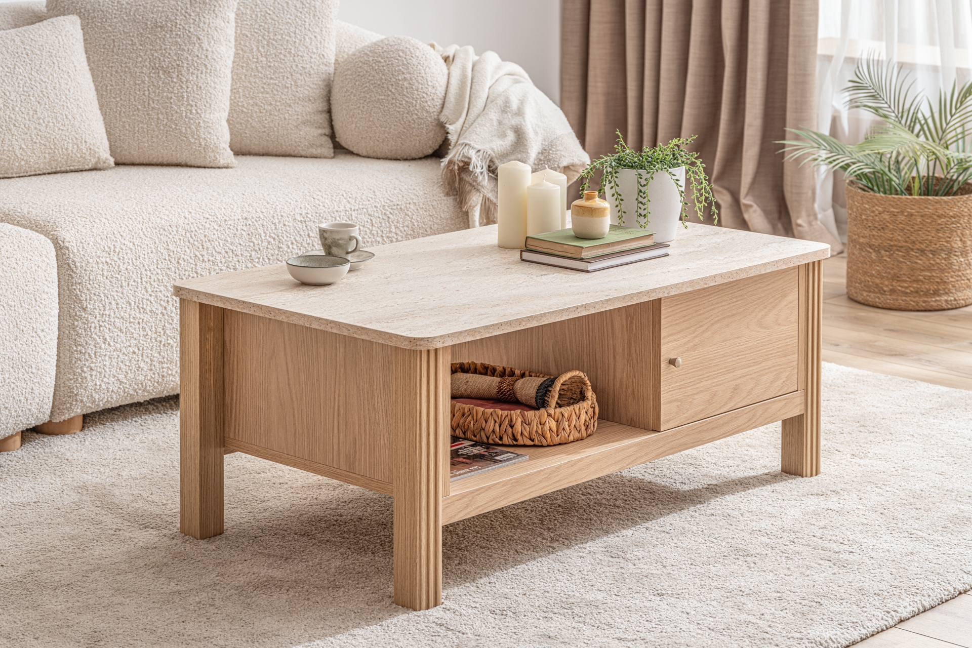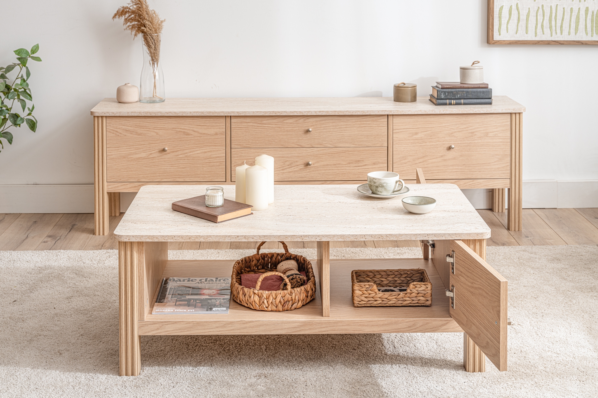 Ek BilgilerHer iki yönü aynı tasarıma sahip yana açılır iki kapaklı orta sehpa