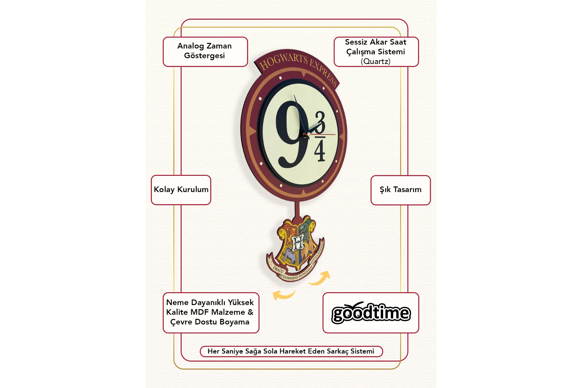 Hogwarts Express Sallanır Sarkaçlı Duvar Saati 27 cm 4 cm 48 cm