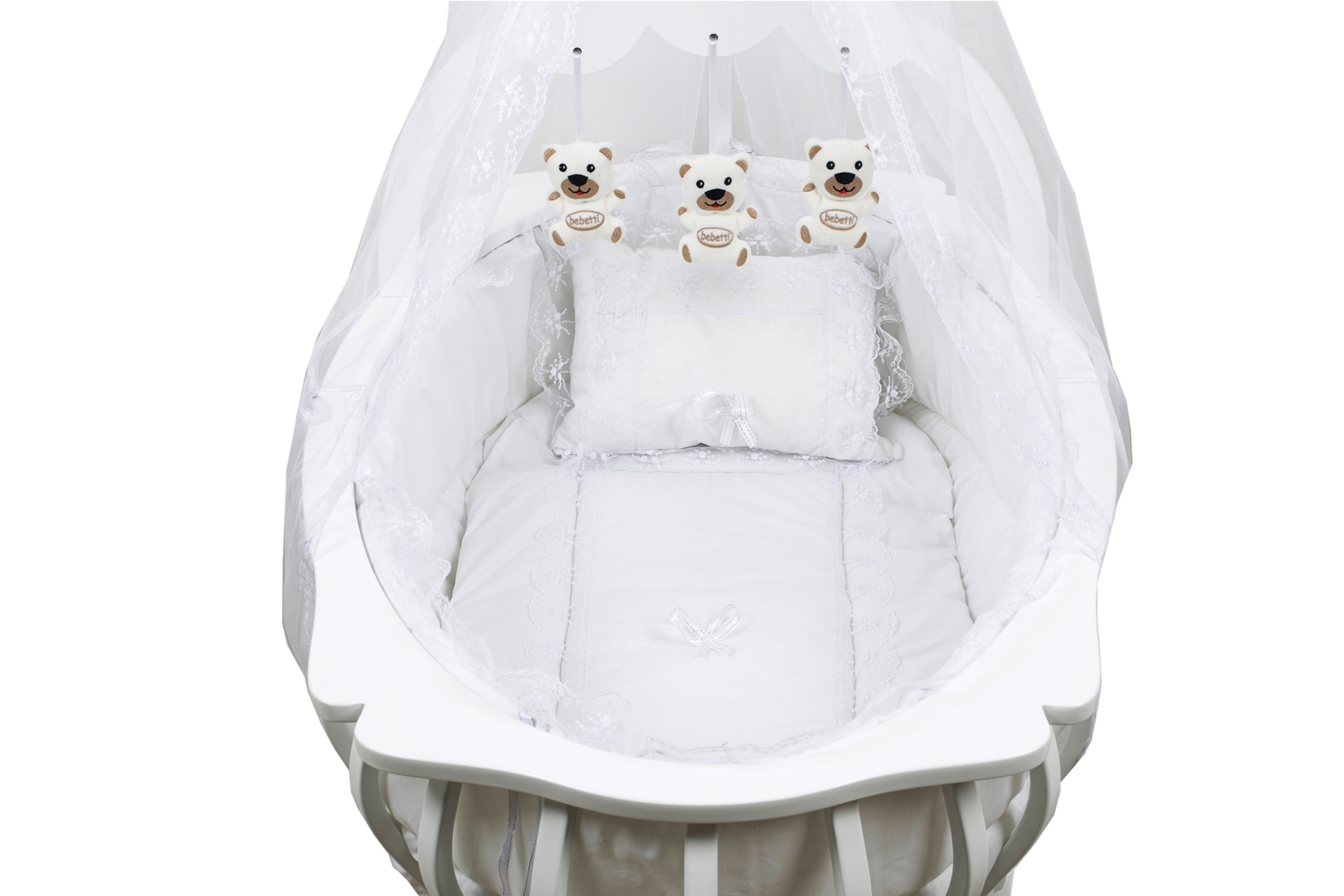 Ek BilgilerÜrünümüzde toksin içermeyen E0 Standartlarına uygun, kurşunsuz boya kullanılmıştır. Beşiğin arka ayaklarında tekerlek, ön ayaklarında sabitlenme pabuçları bulunmaktadır. Beşik, bilyeli sallanma - sabitlenme mekanizmasına sahiptir. Haşerelere karşı cibinlik koruması vardır. Beşik peluş oyuncaklıdır.