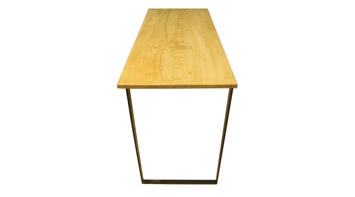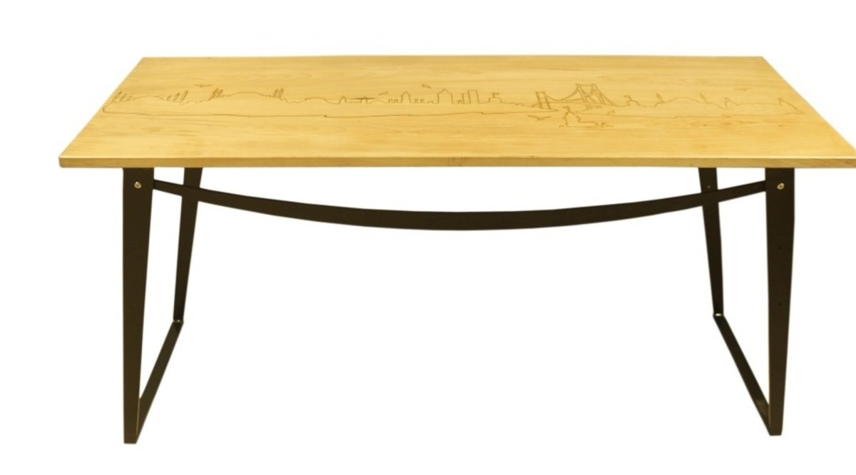 Masa Malzemesi Masa tablası 1. Sınıf akçaağaç olup üzerine tek kat koruyucu cila uygulanmıştır. Desen lazer ile ahşap yakılarak üretilmiştir. Ayaklar çelik malzemedir.