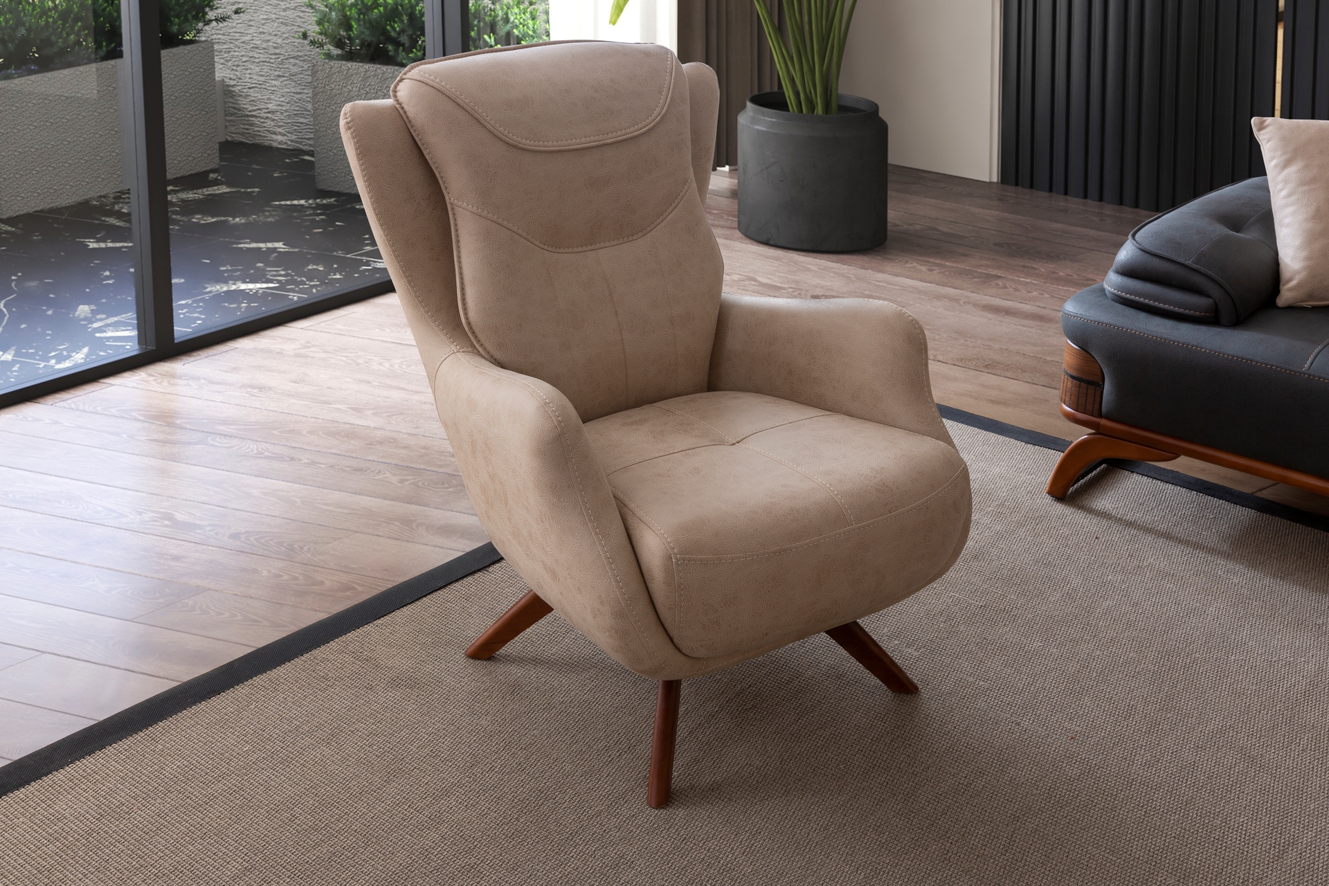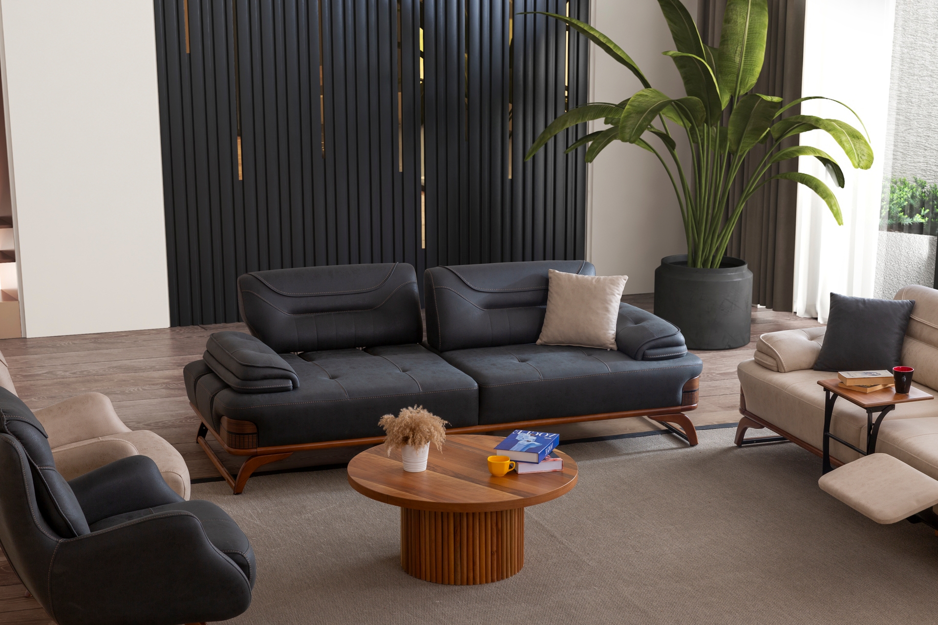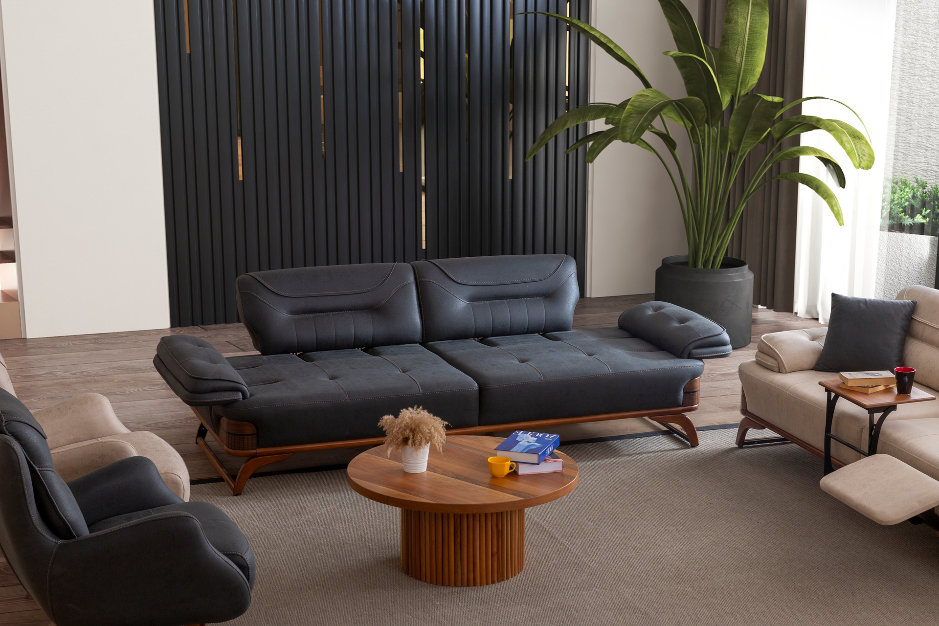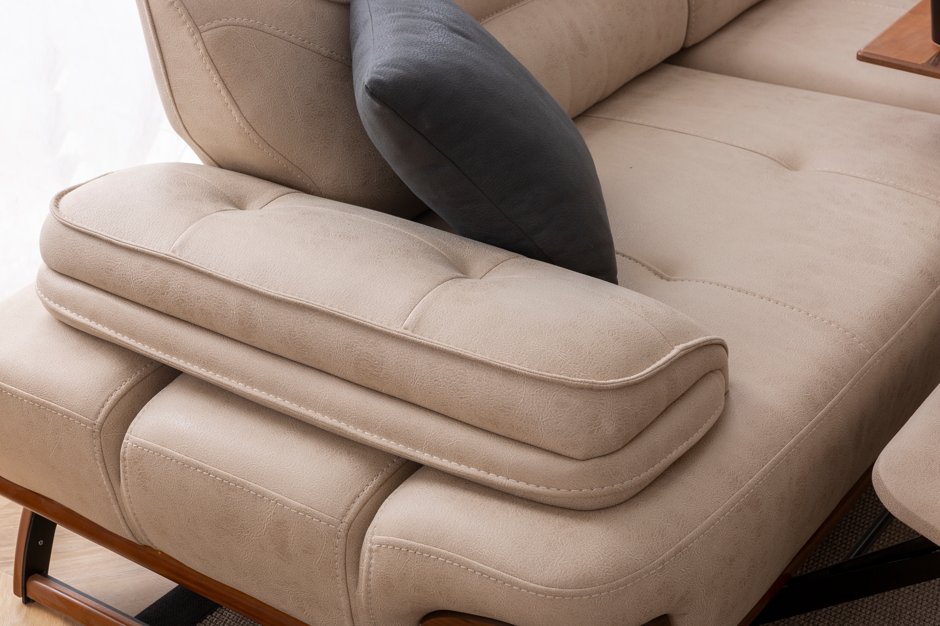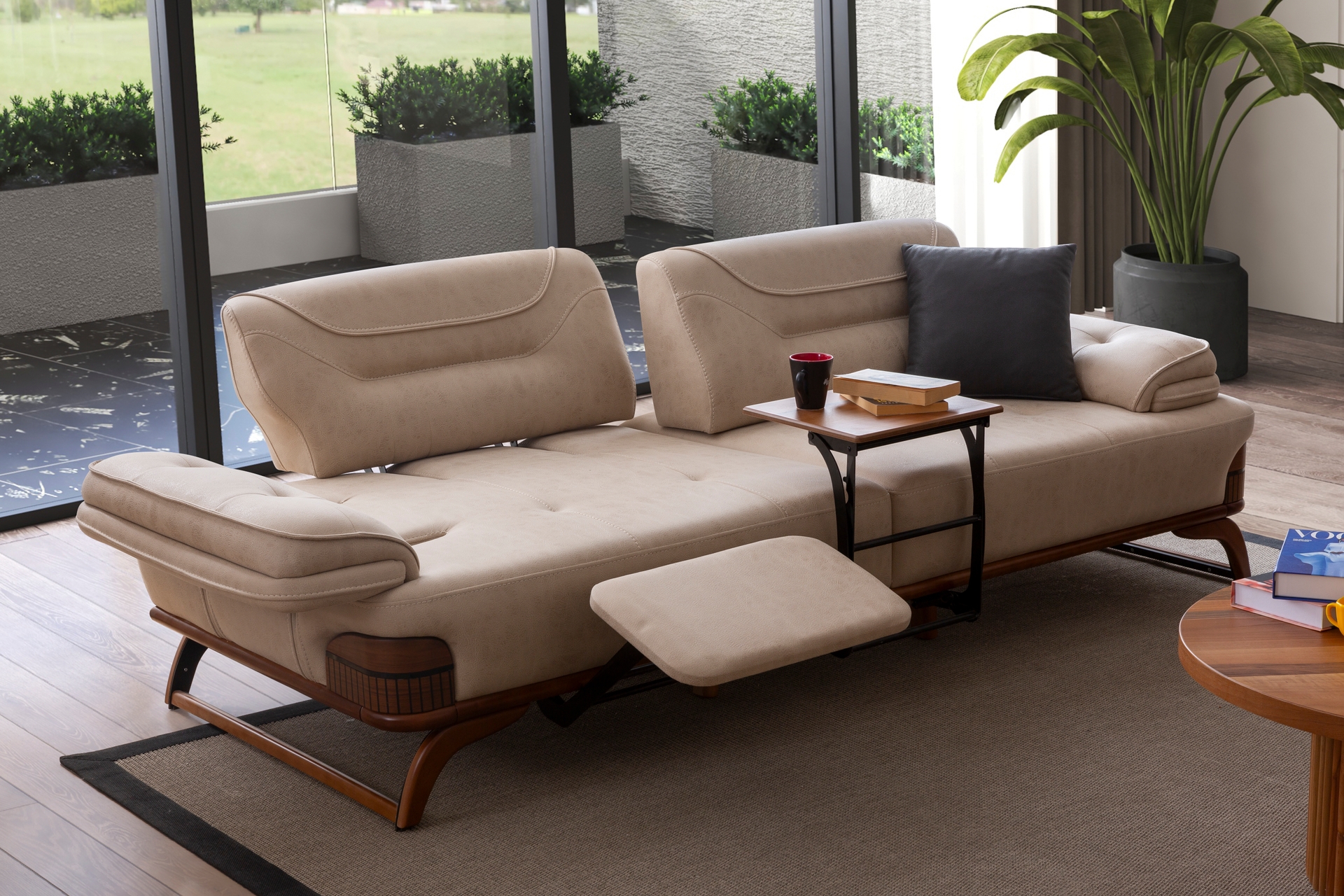 Jaguar Dinlenme Modüllü ve Metal Sehpalı Üçlü Koltuk, Bej