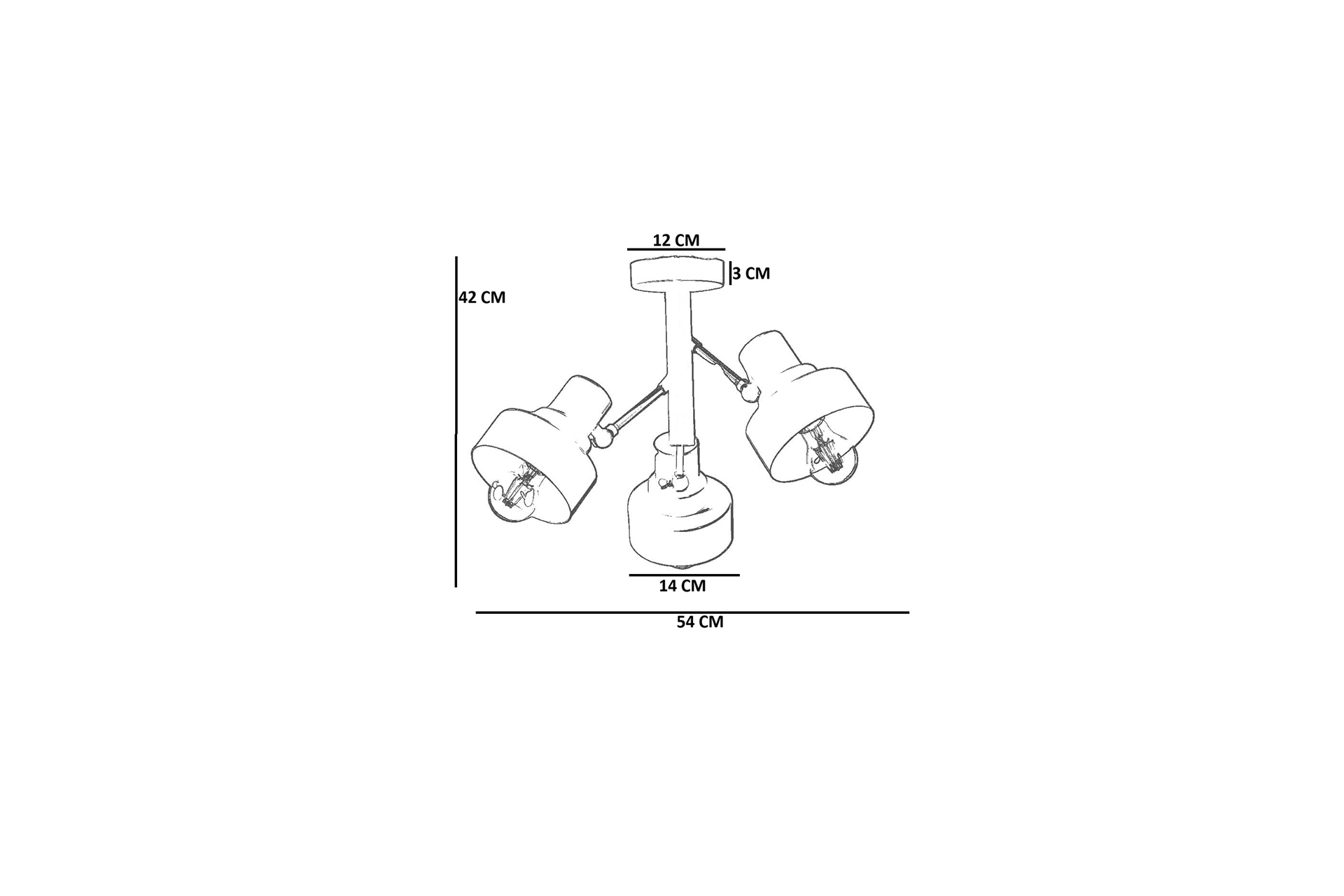 Ek BilgilerÜRÜN ÖLÇÜLERİ Ürün Çapı: 54 CM Ürün Yüksekliği: 42 CM Başlık Çapı: 14 CM ÜRÜN ÖZELLİKLERİ Metal Gövde Statik Fırın Boyalı Başlık Kısmı Hareketlidir 180 Derece Yukarı Aşşağı Hareketlidir Duy Tipi: E 27 Led Ampül Önerilmektedir