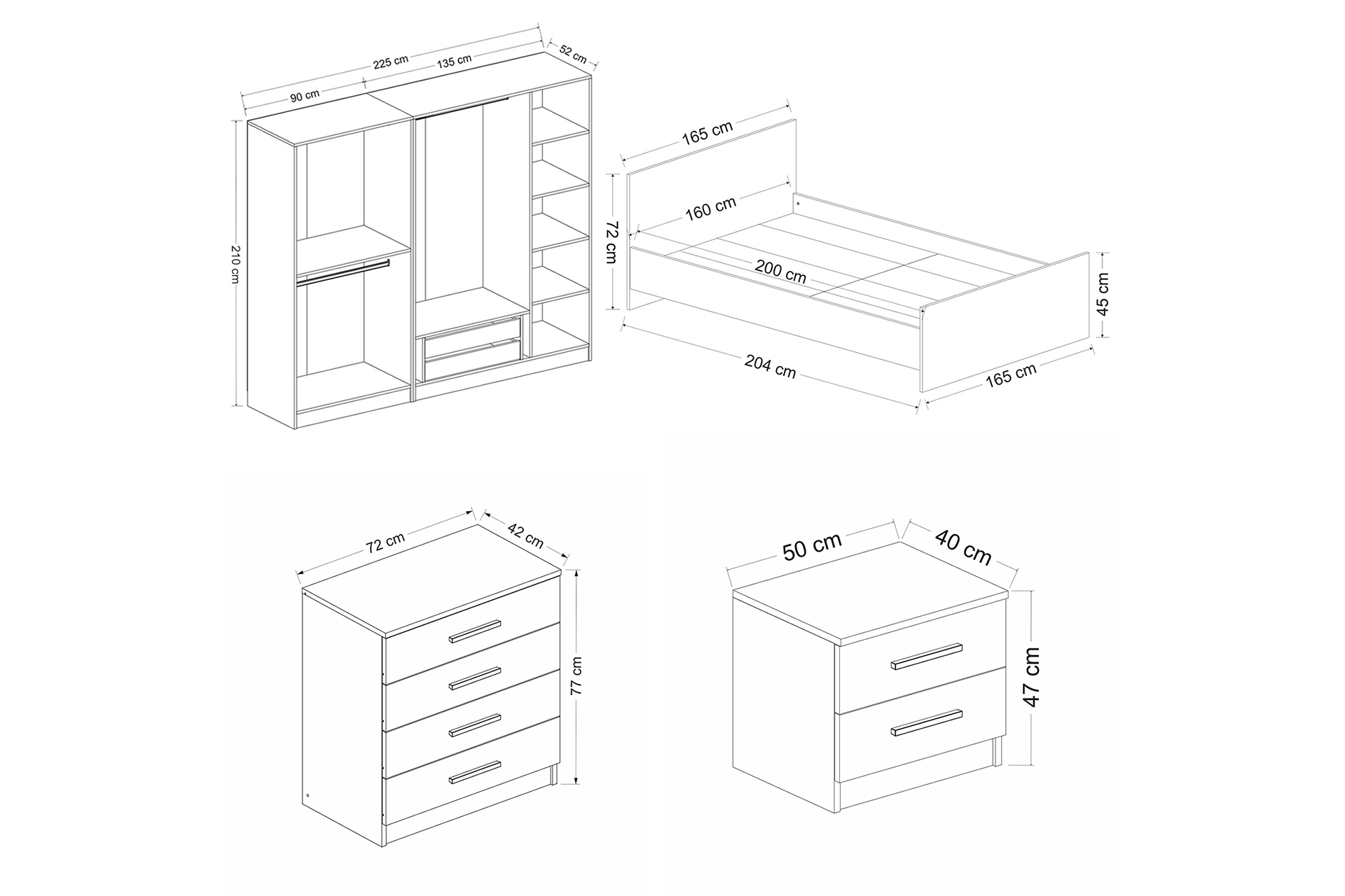 Takım İçeriğiGardırop, karyola, komodin, şifonyer