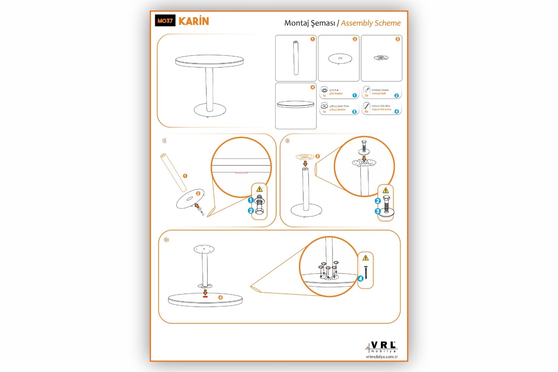 Ürün demonte olarak teslim edilir. Kurulumunu kolayca yapabilmen için de ihtiyacın olan tüm parçalar kurulum şemasıyla birlikte gönderilir. Detaylı bilgi >
