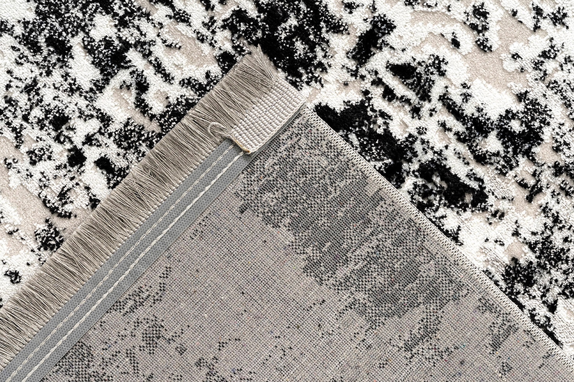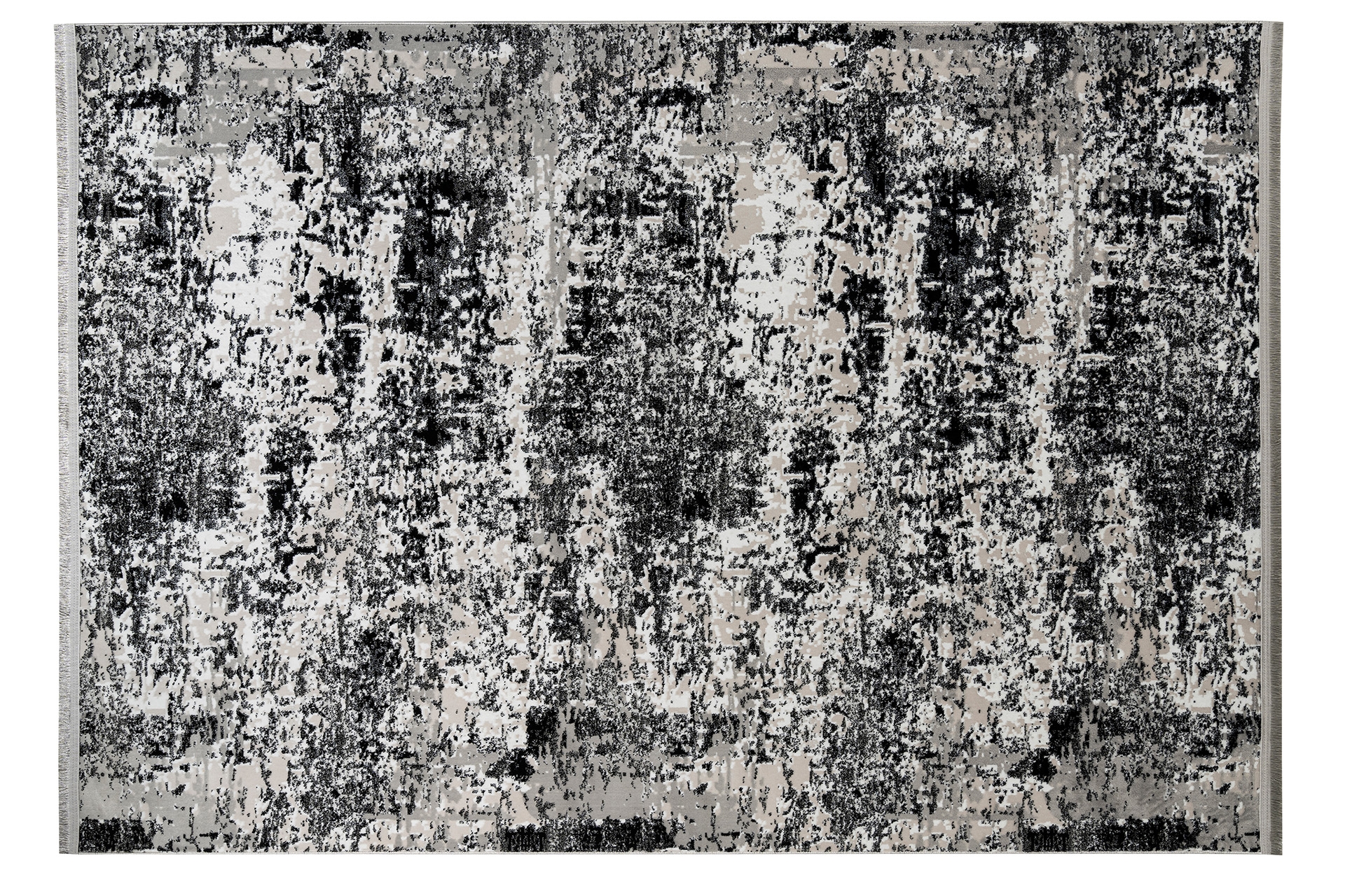 Karnaval Home Siyah Bej Desenli Kırçıllı Saçaklı Modern Dokuma Halı 80X150 100 cm 6 cm 300 cm