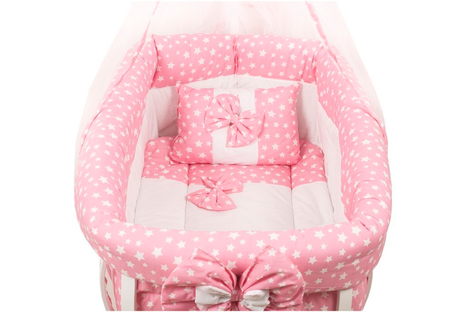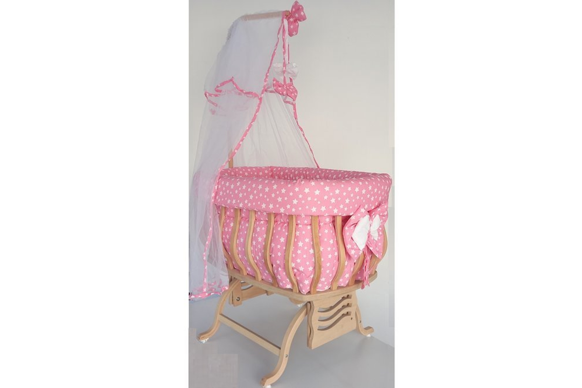 Ek BilgilerLamine edilmiş kayın ağacından üretilmiştir. Ürünlerde kanserojen madde içermemektedir. Alerjik boya ve kumaş kullanılmaz. Beşik tekerleklidir. Kumaş pamuktan üretilmiştir. Birinci sınıf silikon elyaf kullanılmıştır. Set içeriği, ahşap geniş sepet beşik, uyku seti, yatak, cibinlikten oluşmaktadır. Uyku seti içeriği, yatak, yorgan, çarşaf, yastık, yan korumalar ve cibinlikten oluşmaktadır.