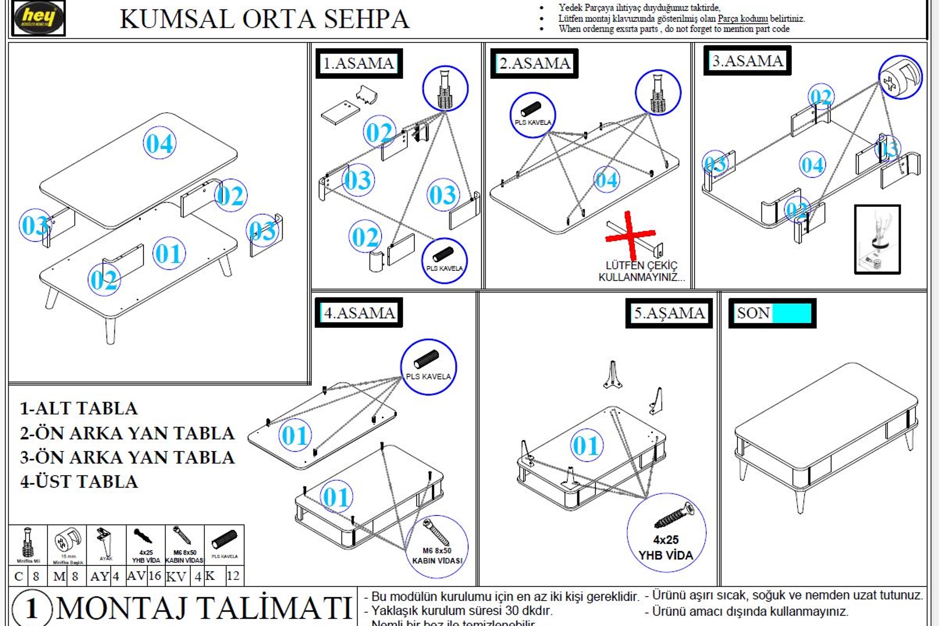 Ürün demonte olarak teslim edilir. Kurulumunu kolayca yapabilmen için de ihtiyacın olan tüm parçalar kurulum şemasıyla birlikte gönderilir. Detaylı bilgi >