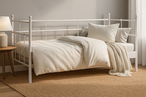 Ek BilgilerYatak fiyata dahil değildir. Kurulum için araç gerece ihtiyaç bulunmamaktadır. Tamamen geçme sistemlidir. Konik geçme sistemi kullanlmaktadır. Uygun Yatak Ölçüsü: 90x200 Yerden Yüksekliği: 24 cm Toplam Yükseklik: 92cm Dıştan Dışa Ölçüsü: 96x210 Yatak Yuvası Derinliği: 11 cm Toplam Taşıma Kapasitesi: 150 kg Yatak altı platform olarak “AHŞAP LATA” kullanılmaktadır. NEDEN AHŞAP LATA? Kayın plakaların preslenmesiyle oluşturulduğundan esneme kabiliyetine sahiptir. Esnemenin getirdiği ekstra konfor sağlar. Avrupa ve Amerika’da tercih edilen yatak altı platformudur. Yatağın alttan hava almasını sağlar. Mukavemet sağlar. Montajı kolaydır. NEDEN KONİKLEŞTİRİLMİŞ GEÇME SİSTEM? Metal karyola, sofa, daybed ve ranza gibi ürünlerde, tüketicilerin en sık şikayet ettiği sorunlar zamanla oluşan sallanma ve gıcırdama sesidir. Standart vida veya kızaklı bağlantı sistemleri, zamanla boşluk oluşumuna, dolayısıyla sallanma ve ses problemlerine yol açarlar. Unimet ürünlerinde ise vidalı bağlantı yerine KONİKLEŞTİRİLMİŞ GEÇME SİSTEM kullanılır. Bu sistem hem montajı kolaylaştırır hem de ürün üzerinde oluşan ağırlık ile kilitleme sistemi güçlendirerek, sallanma ve ses sorunlarını ortadan kaldırır. Ayrıca, özel bükülmüş yan sac traversler ve ters kilitli borular sayesinde esneme önlenir ve ahşap lata plakalar ile yatağın hava alması sağlanarak konfor artırılır