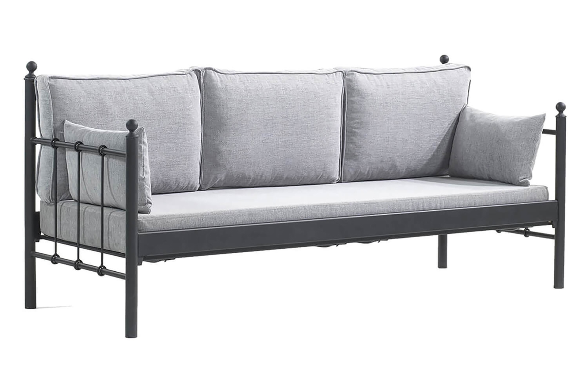Ek BilgilerSehpa fiyata dahil değildir. Koltuklarda kurulum için vida v.b. araç gerece ihtiyaç yoktur. Tamamen geçme sistemlidir. Koltuk yerden yüksekliği 24 cm dir. İçten İçe Ölçüsü: 70x200 cm Dıştan Dışa Ölçüsü: 76x210 cm Yerden Yükseklik: 24 cm Toplam Yükseklik: 92 cm Minder Altı Platform: Ahşap Lata Minder Destek Profilleri: 1.2 mm Kilit Sistemi Malzemesi: 4 mm Borular: 1.2 mm Saclar: 1.5 mm NEDEN AHŞAP LATA? Kayın plakaların preslenmesiyle oluşturulduğundan esneme kabiliyetine sahiptir. Esnemenin getirdiği ekstra konfor sağlar. Avrupa ve Amerika’da tercih edilen yatak altı platformudur. Minderin alttan hava almasını sağlar. Mukavemet sağlar. Montajı kolaydır. MİNDER ÖZELLİKLERİ Minderler 1. sınıf kumaş kaplamadır. Silinebilir kumaştır. Outdoor kullanıma uygundur. Su itici özelliğe sahiptir. Minderlerde 28 DNS Flexi sünger kullanılmıştır. Alt minder kalınlığı 14 cm'dir. Sırt minder kalınlığı 12 cm'dir. Sırt minder ölçüsü 45x70x12'dir. Sırt minder sünger sertlik derecesi flexi (Orta Sert) Alt minder sünger sertlik derecesi flexi (Orta Sert) NEDEN KONİKLEŞTİRİLMİŞ GEÇME SİSTEM? Metal karyola, sofa, daybed ve ranza gibi ürünlerde, tüketicilerin en sık şikayet ettiği sorunlar zamanla oluşan sallanma ve gıcırdama sesidir. Standart vida veya kızaklı bağlantı sistemleri, zamanla boşluk oluşumuna, dolayısıyla sallanma ve ses problemlerine yol açarlar. Unimet ürünlerinde ise vidalı bağlantı yerine KONİKLEŞTİRİLMİŞ GEÇME SİSTEM kullanılır. Bu sistem hem montajı kolaylaştırır hem de ürün üzerinde oluşan ağırlık ile kilitleme sistemi güçlendirerek, sallanma ve ses sorunlarını ortadan kaldırır. Ayrıca, özel bükülmüş yan sac traversler ve ters kilitli borular sayesinde esneme önlenir ve ahşap lata plakalar ile minderin hava alması sağlanarak konfor artırılır.