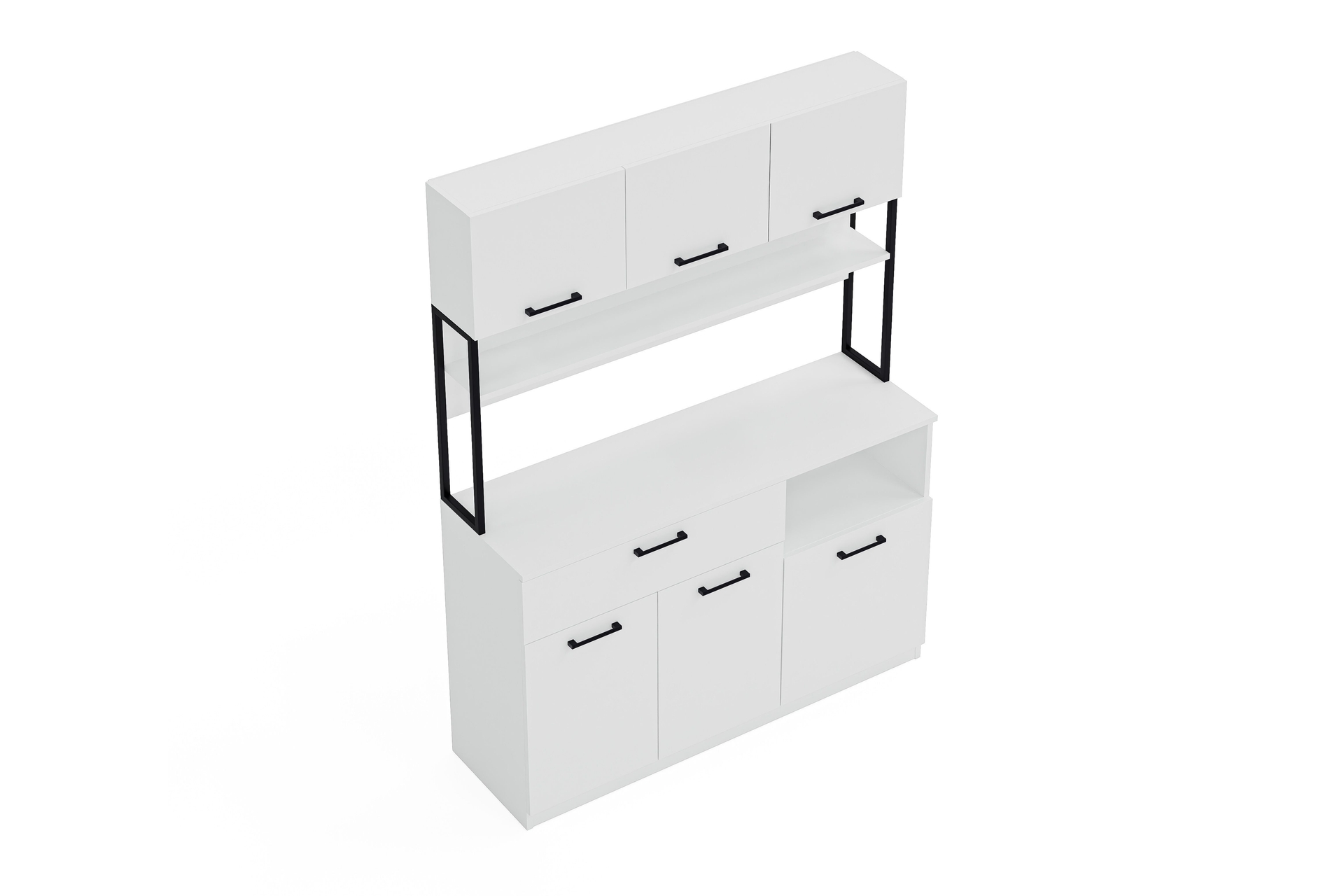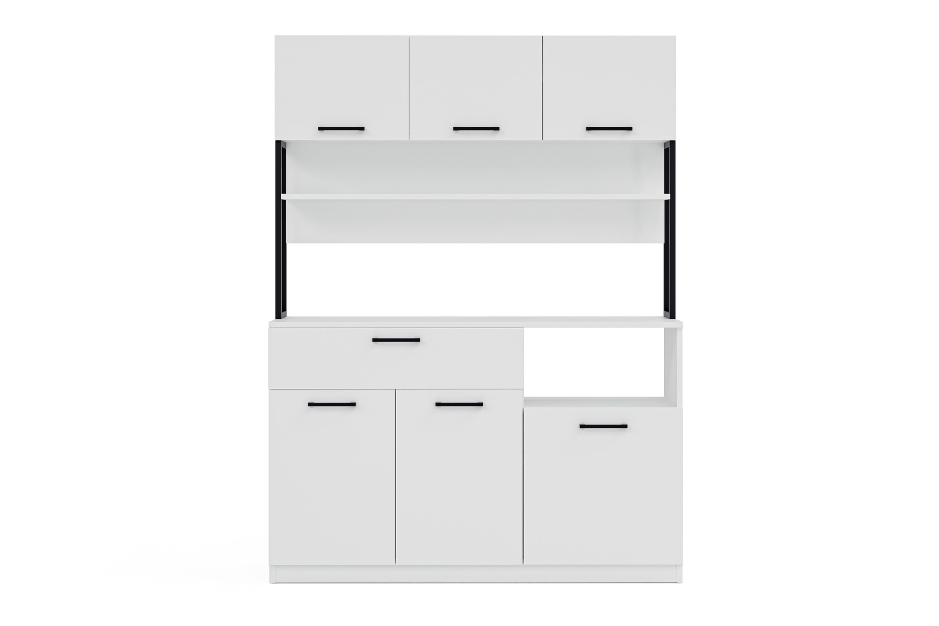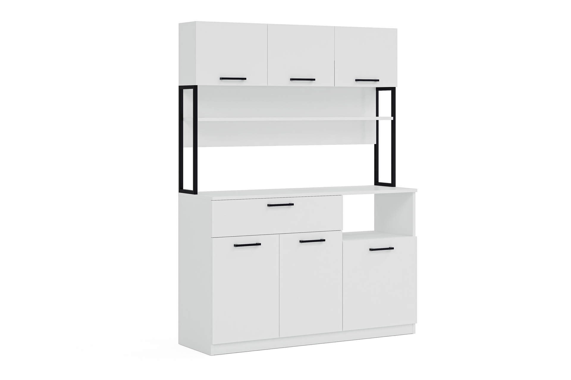 LAVO 6 KAPAKLI ÇEKMECELİ ÇOK AMAÇLI KAHVE KÖŞESİ DOLABI BEYAZ 135 cm 42 cm 180 cm