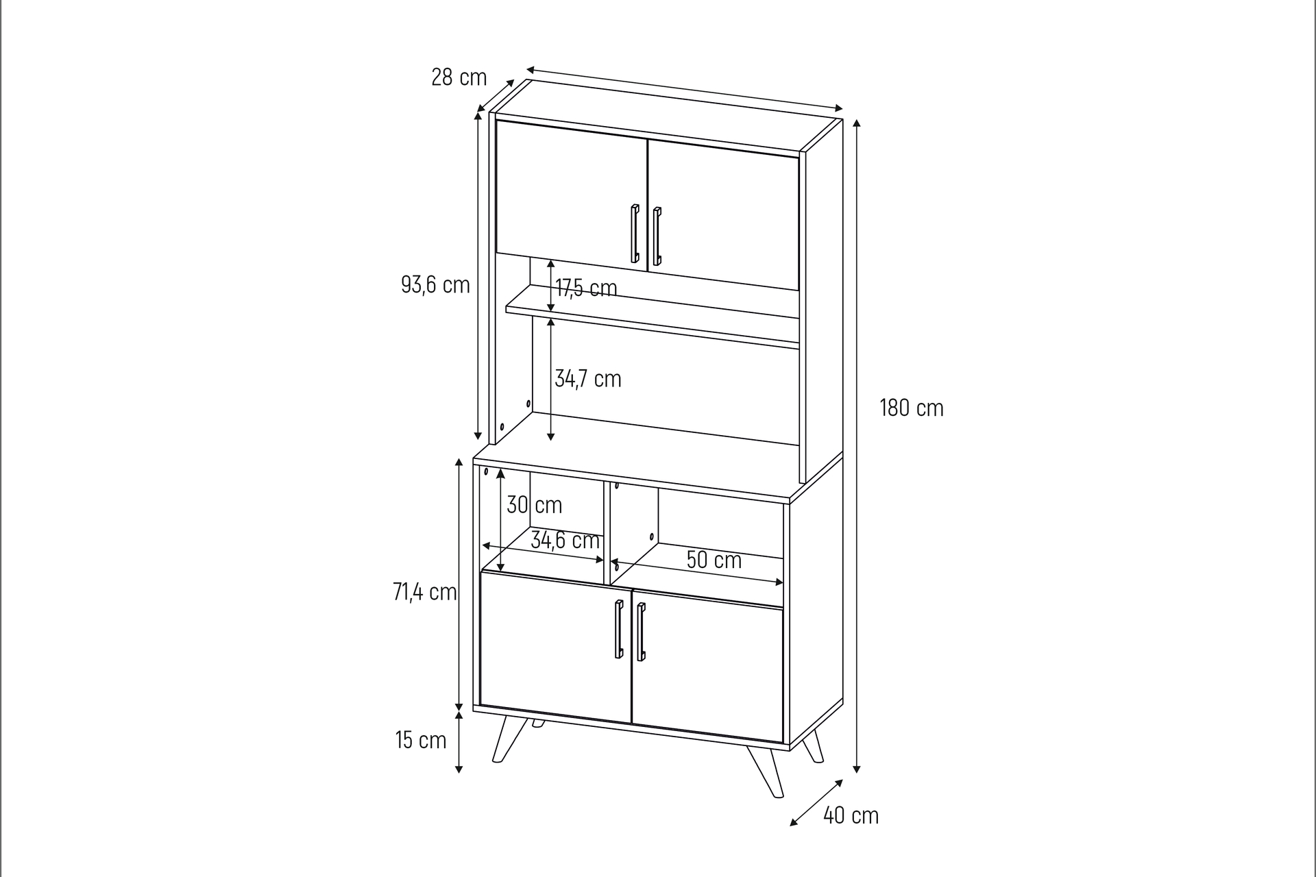 LAVO 4 KAPAKLI RAFLI ÇOK AMAÇLI DOLAP 90 cm 40 cm 165 cm