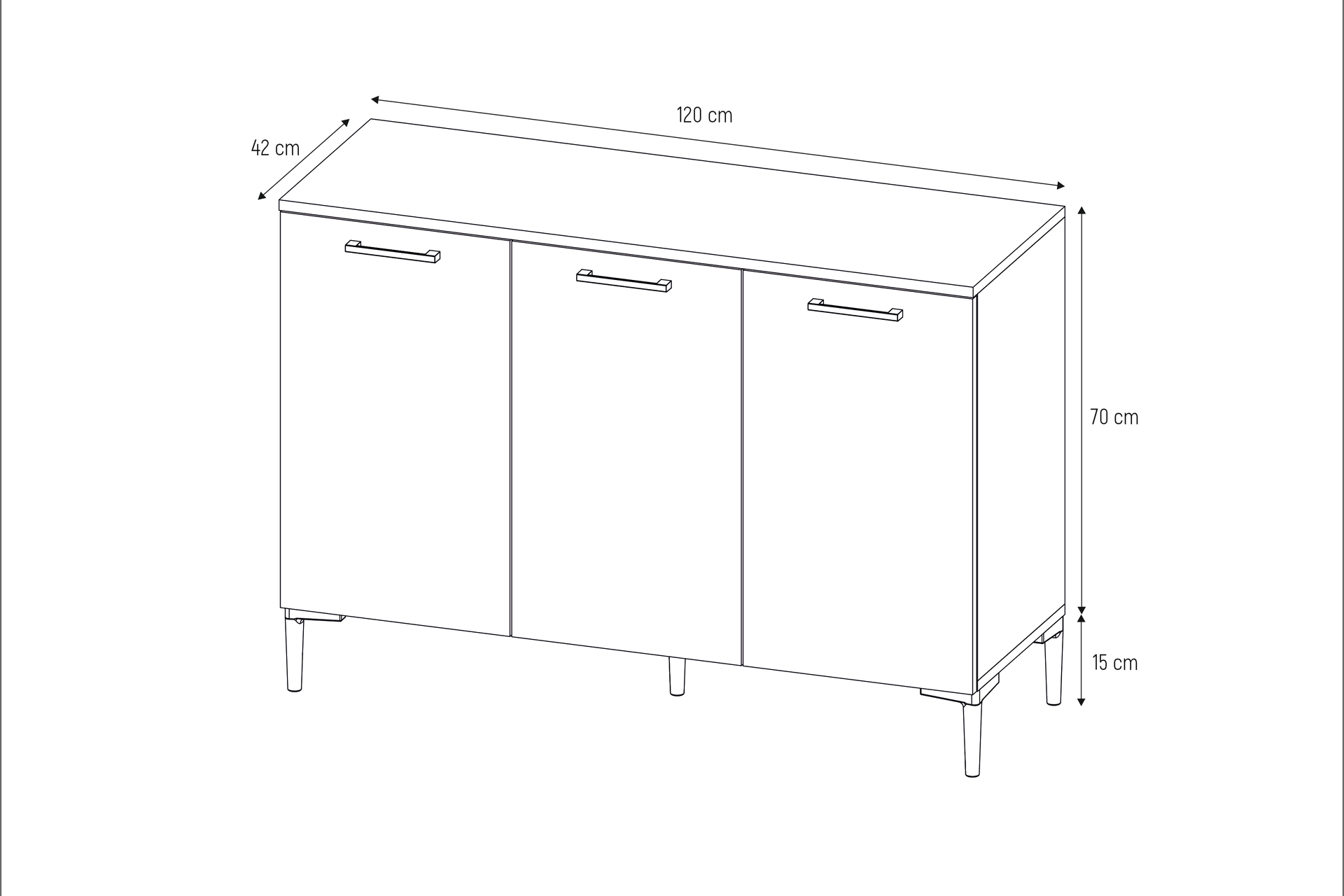3 KAPAKLI ÇOK AMAÇLI KİLER DOLABI 120 cm 42 cm 85 cm